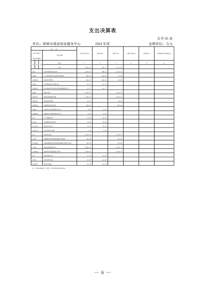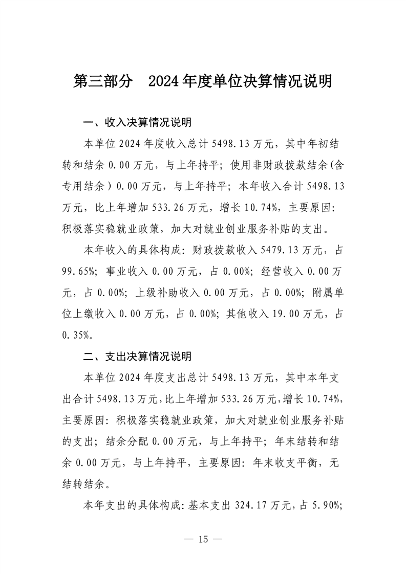 樟樹市就業創業服務中心2024年單位決算