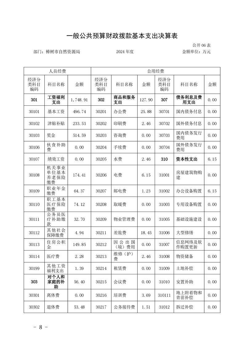 樟樹市自然資源局2024年度部門決算
