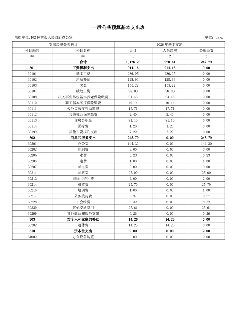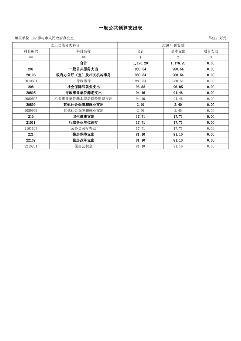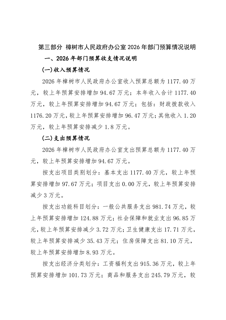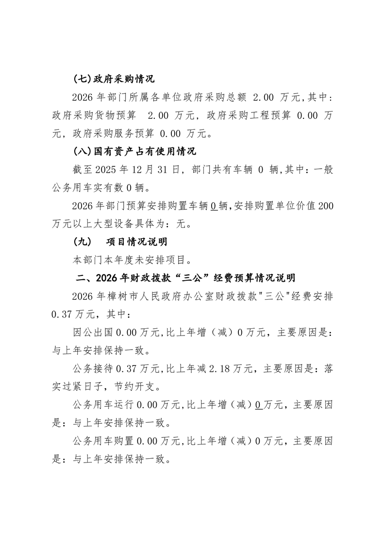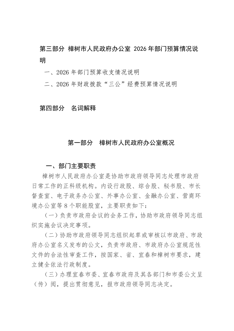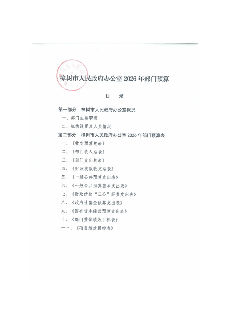 樟樹市人民政府辦公室2026年預算公開