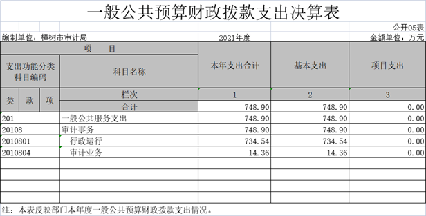 五、一般公共預算財政撥款支出決算表