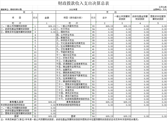本部門2022年度收入總計609.19萬元,其中年初結轉和結余0萬元,較2021年增加0萬元,增長0%;本年收入合計609.19萬元,較2021年減少139.71萬元,下降18.7%,主要原因是:人員調出及退休,在職人數減少,人員經費及公用經費減少。