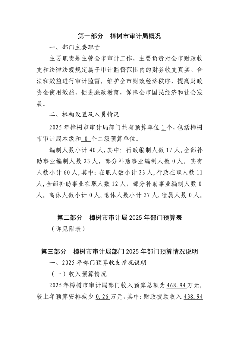 樟樹市審計局2025年部門預算公開