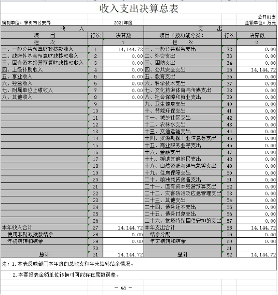 本部門2021年度收入總計(jì) 14144.72萬元,其中年初結(jié)轉(zhuǎn)和結(jié)余 0 萬元,較2020年減少302.57萬元,減少2.9 %;本年收入合計(jì)14144.72萬元,較2020年減少302.57萬元,減少2.9 %。