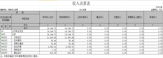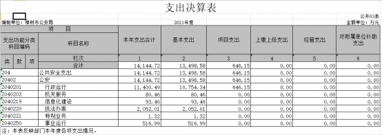 (二)公共安全支出年初預(yù)算數(shù)為 14144.72 萬元,決算數(shù)為14144.72萬元,完成年初預(yù)算的100 %。