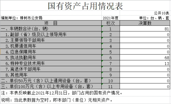 截止2021年12月31日,本部門國有資產(chǎn)占用情況見公開09表《國有資產(chǎn)占用情況表》。其中車輛中的其他用車無。