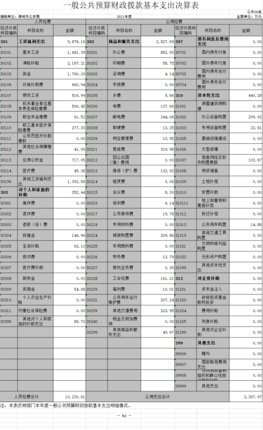 六、一般公共預(yù)算財(cái)政撥款基本支出決算表