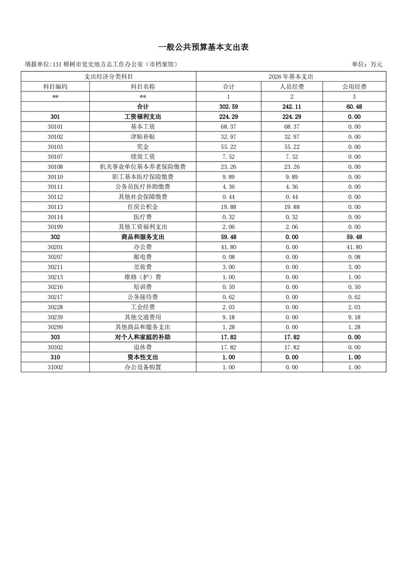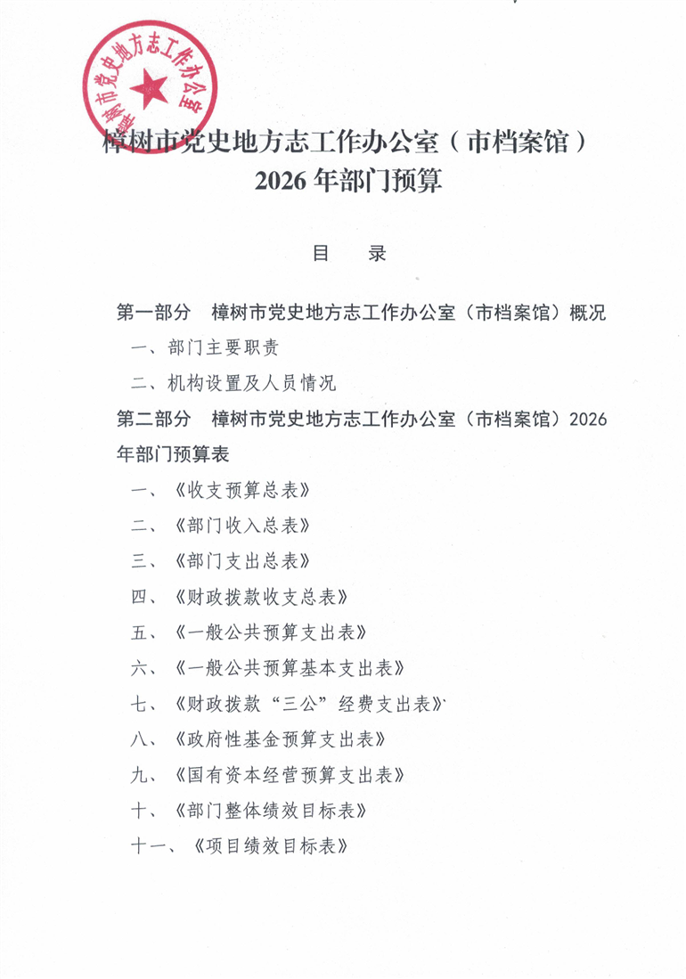 樟樹市黨史地方志工作辦公室(市檔案館)2026年部門預(yù)算