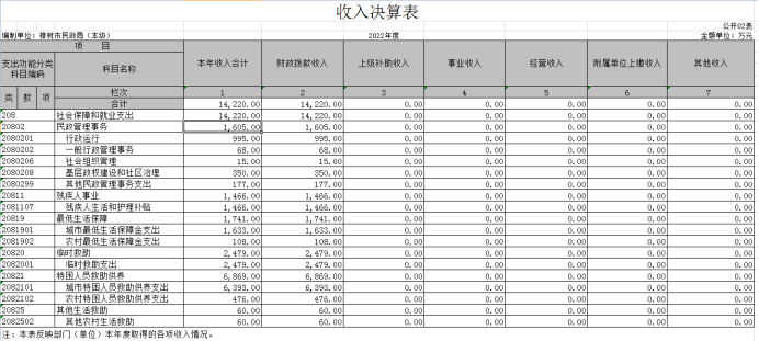 本部門2022年度收入總計(jì)14220萬元,其中年初結(jié)轉(zhuǎn)和結(jié)余0萬元,較2021年持平 %;本年收入合計(jì)14220萬元,較2021年下降1244萬元,下降8 %,主要原因是:因機(jī)構(gòu)改革原因我局優(yōu)撫、救災(zāi)、扶貧等業(yè)務(wù)劃出,導(dǎo)致2022年比2021年決算數(shù)據(jù)減少。