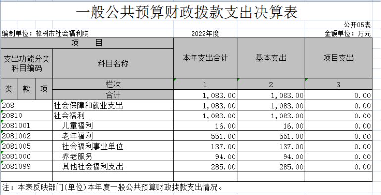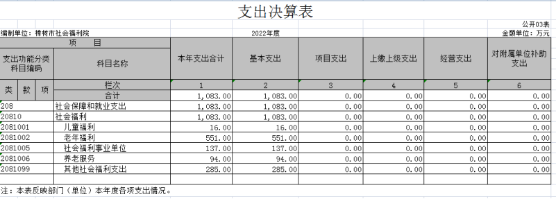 樟樹市社會福利院2022年度決算