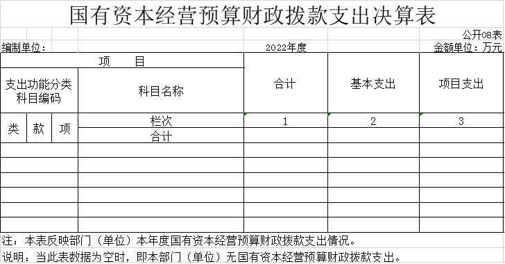 八、國有資本經營預算財政撥款支出決算表