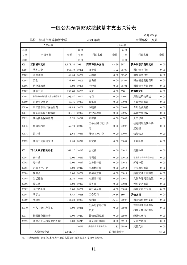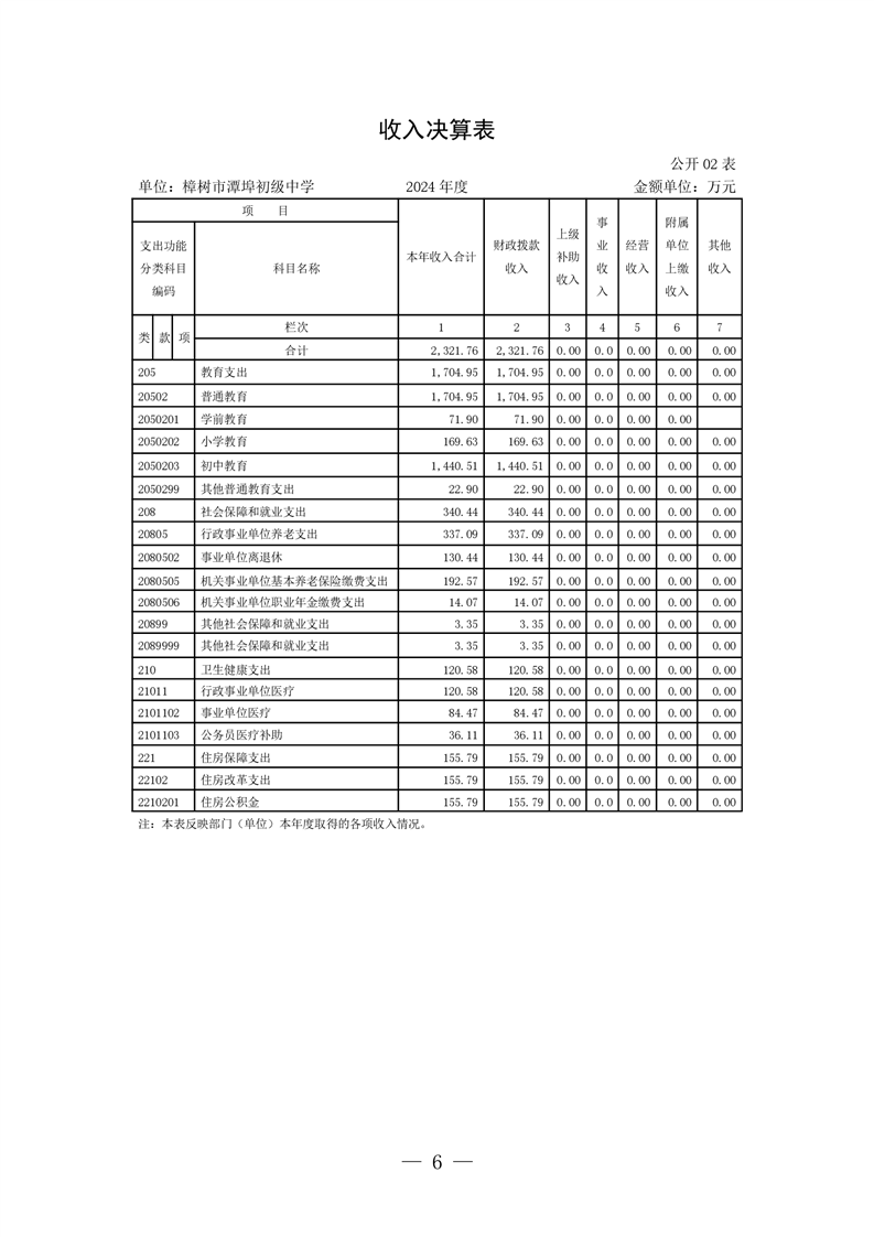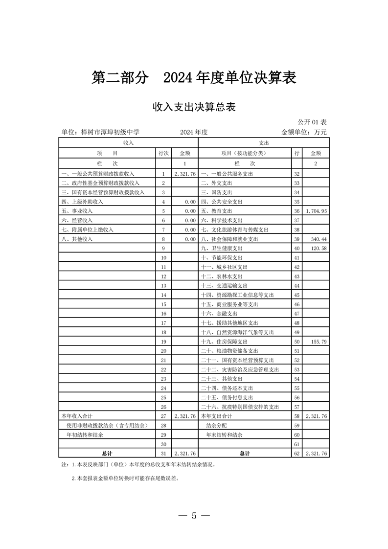 樟樹市潭埠初級中學2024年單位決算
