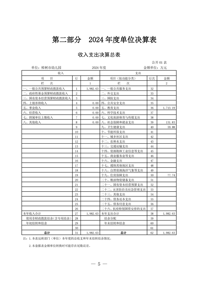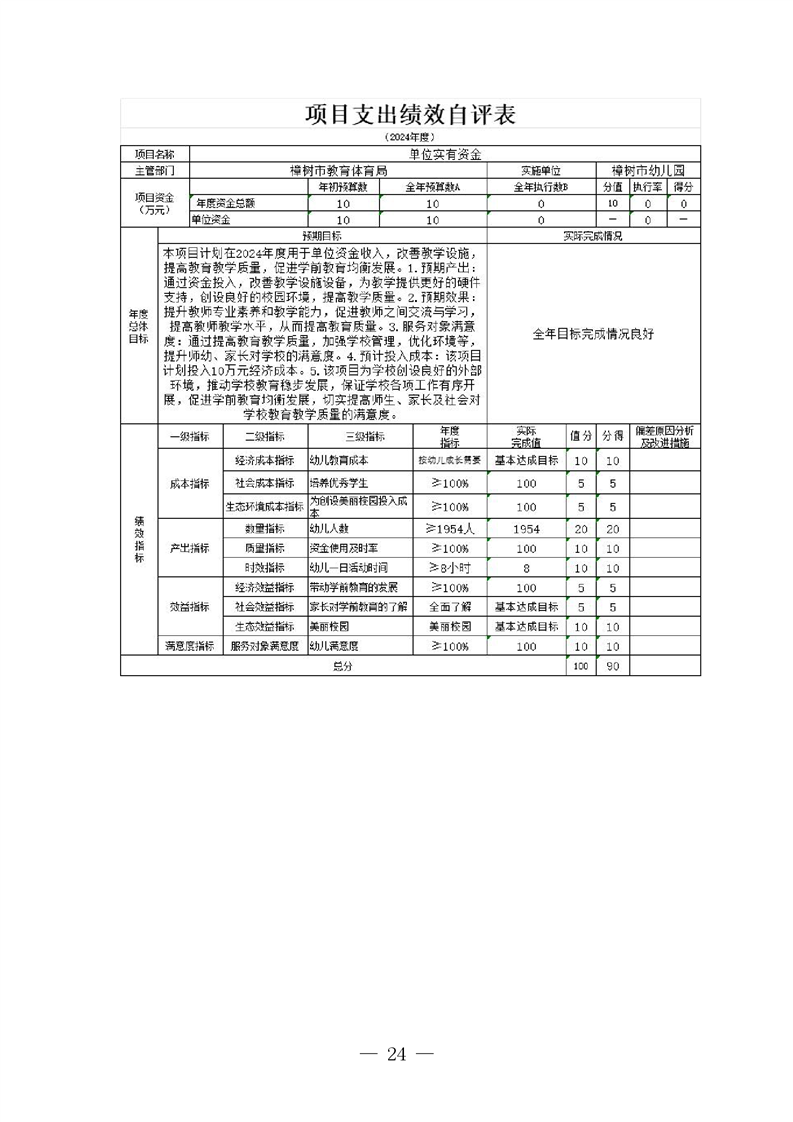 樟樹市幼兒園2024年單位決算