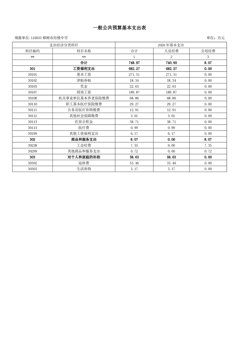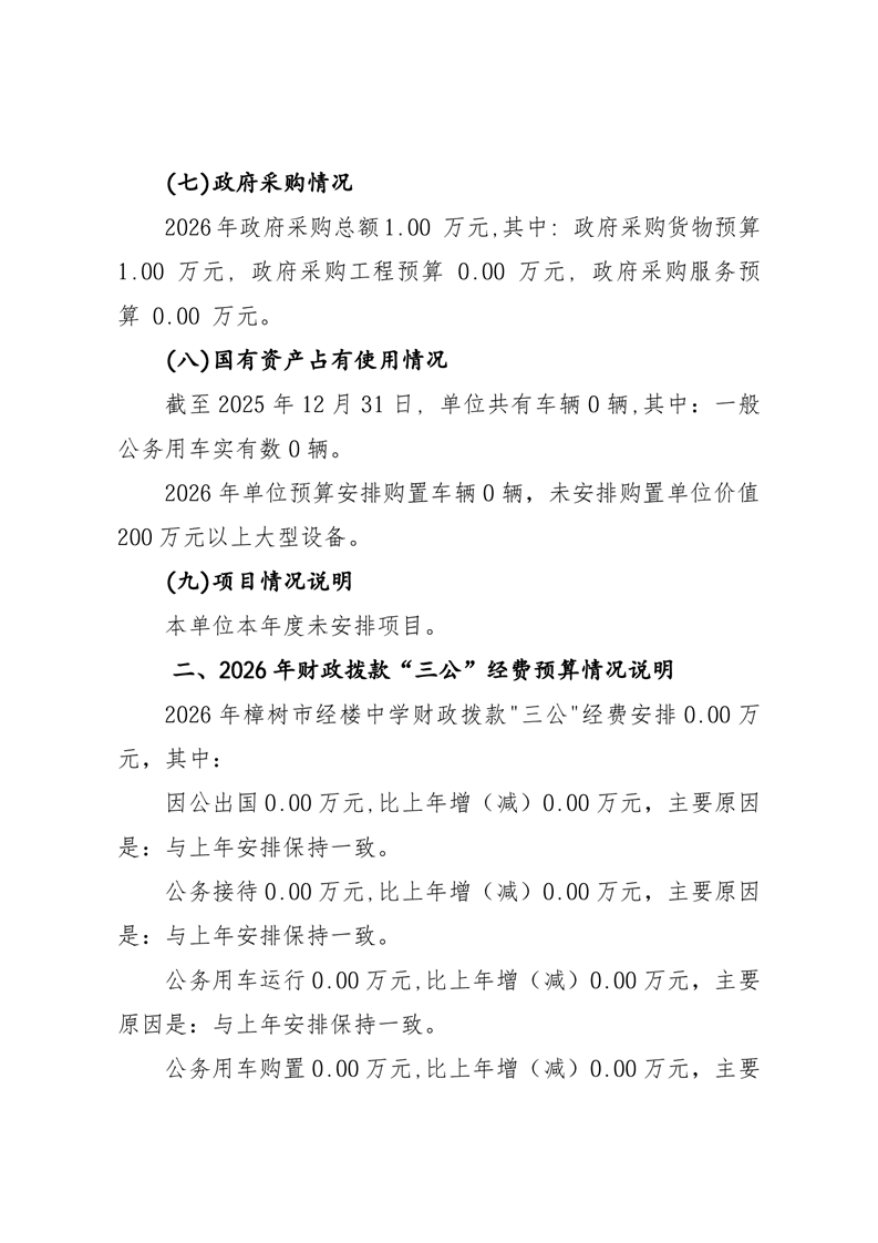 樟樹市經(jīng)樓中學(xué)2026年單位預(yù)算