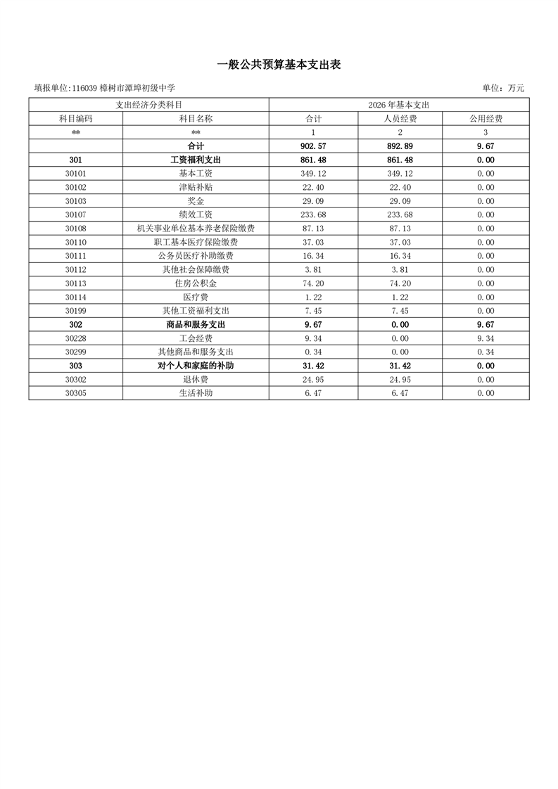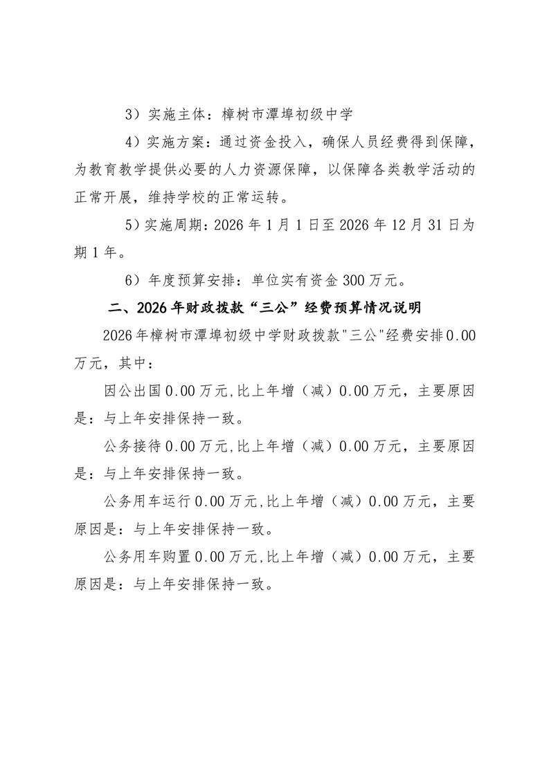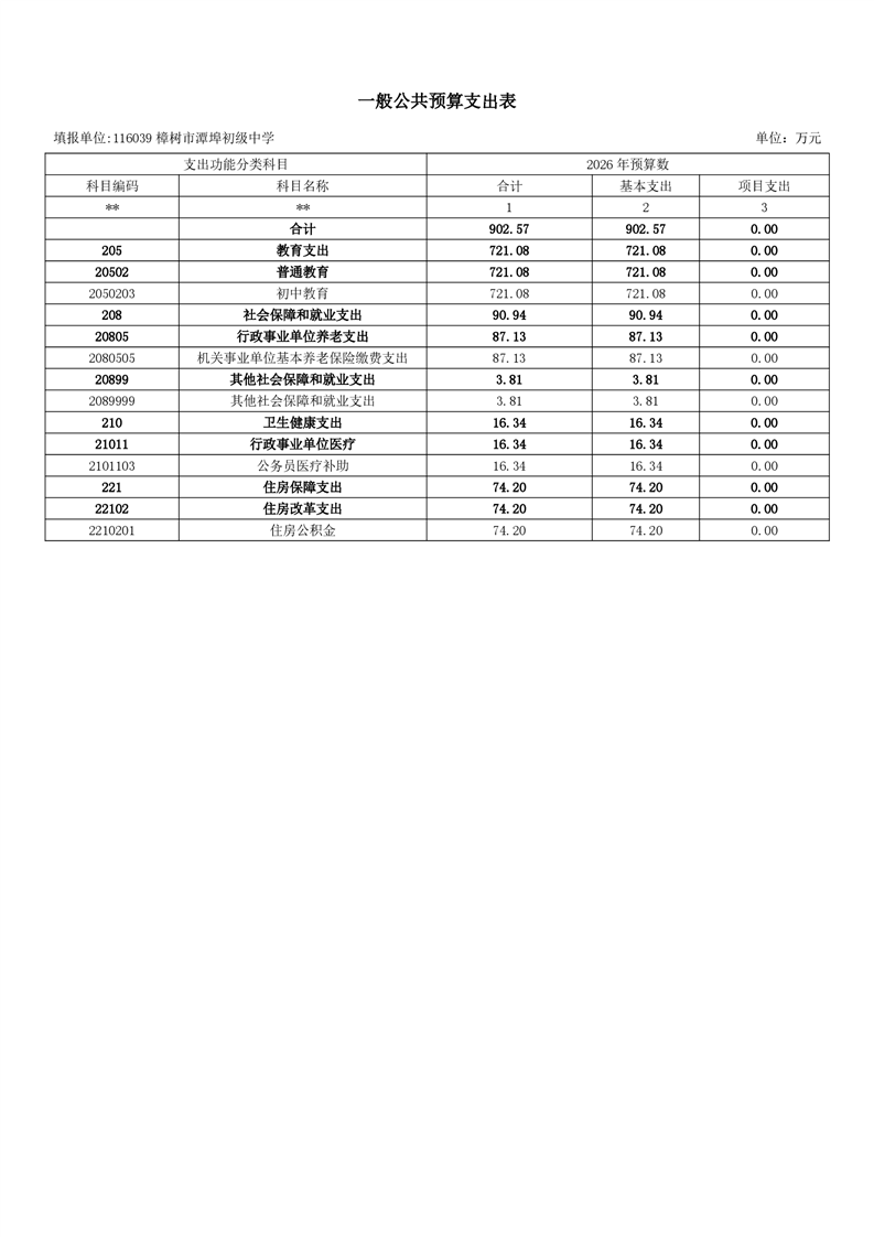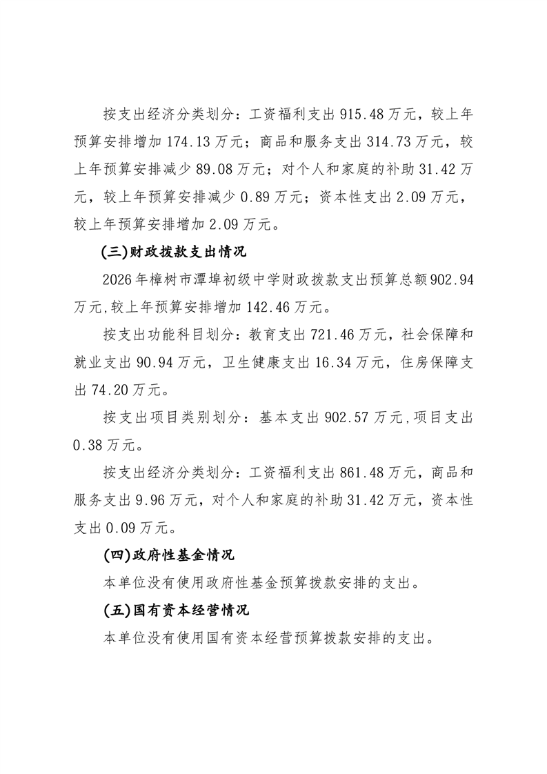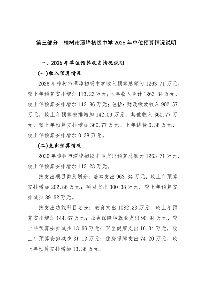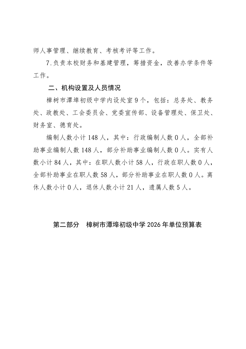 樟樹市潭埠初級中學2026年單位預算