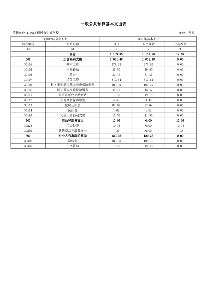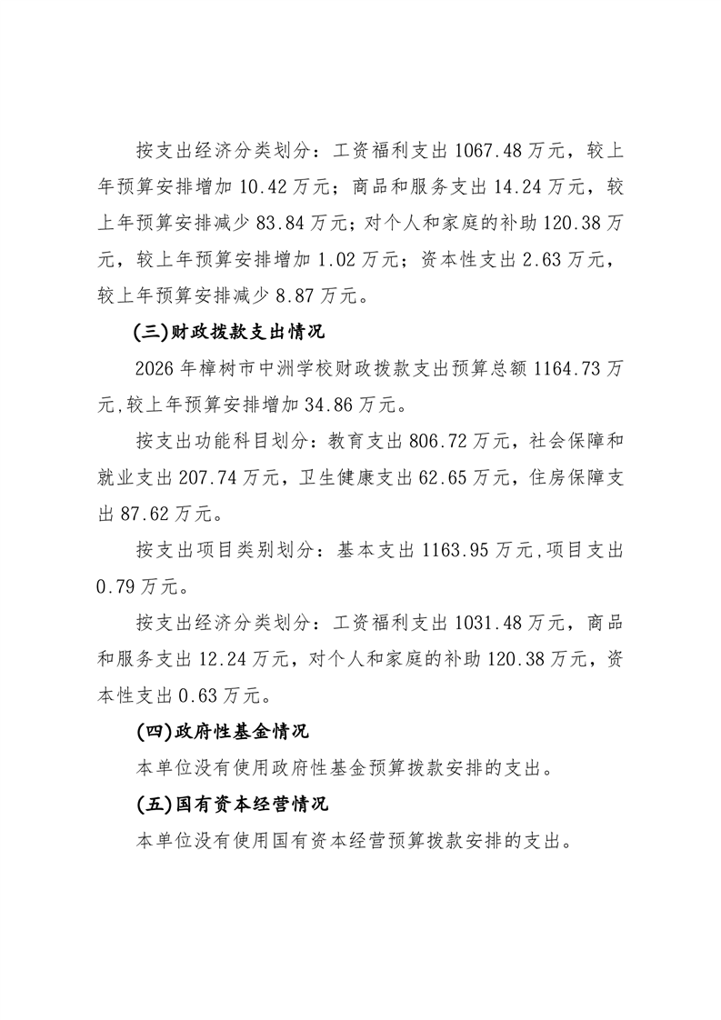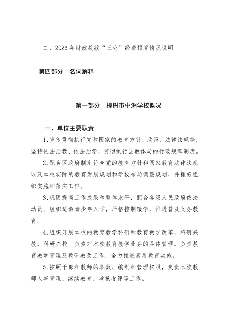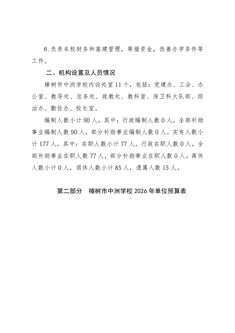 樟樹市中洲學(xué)校2026年單位預(yù)算