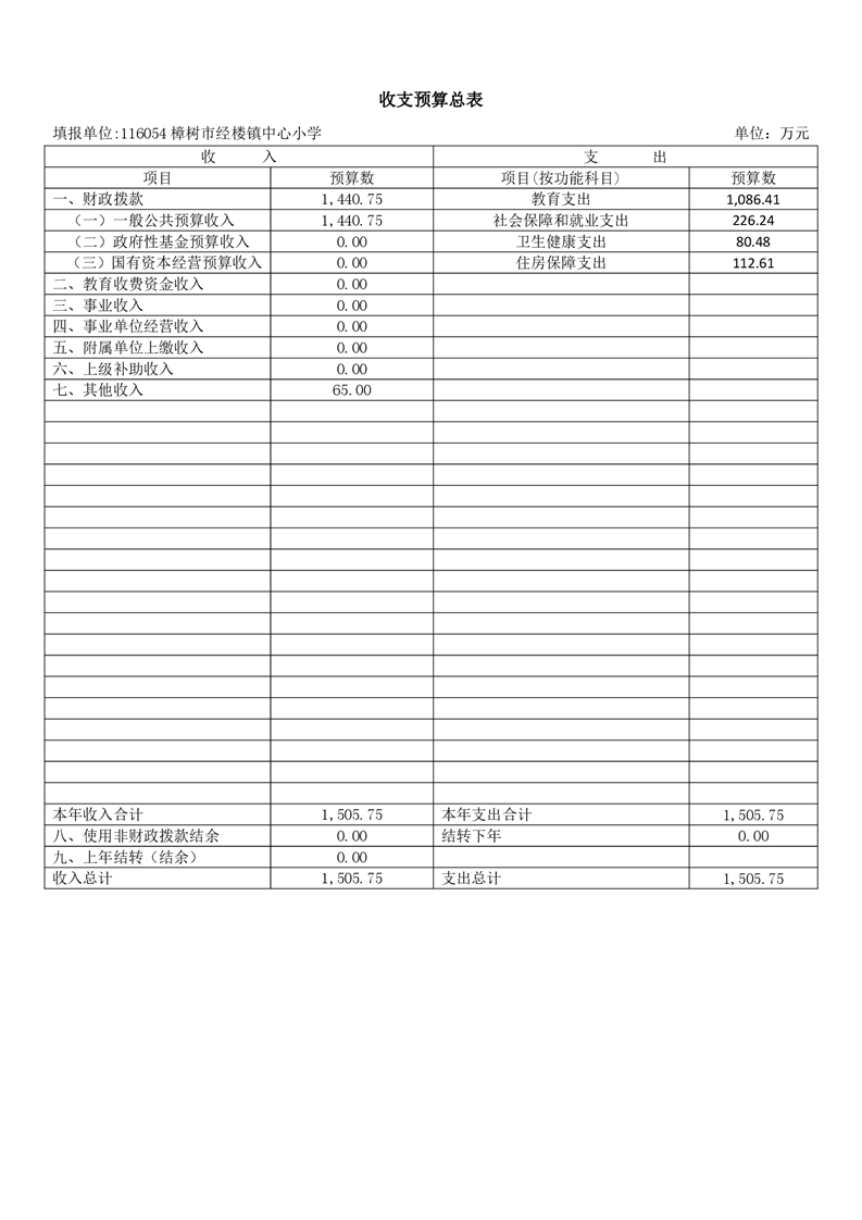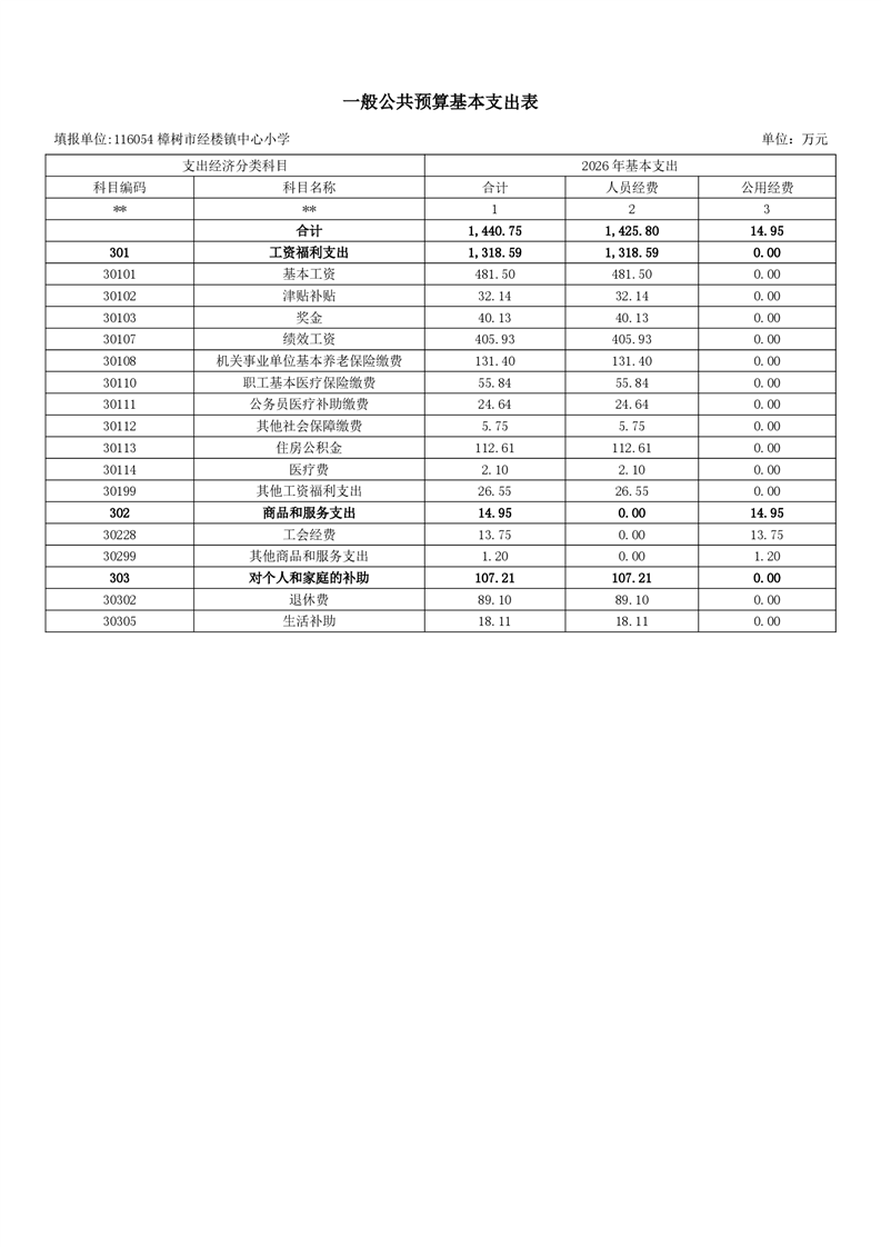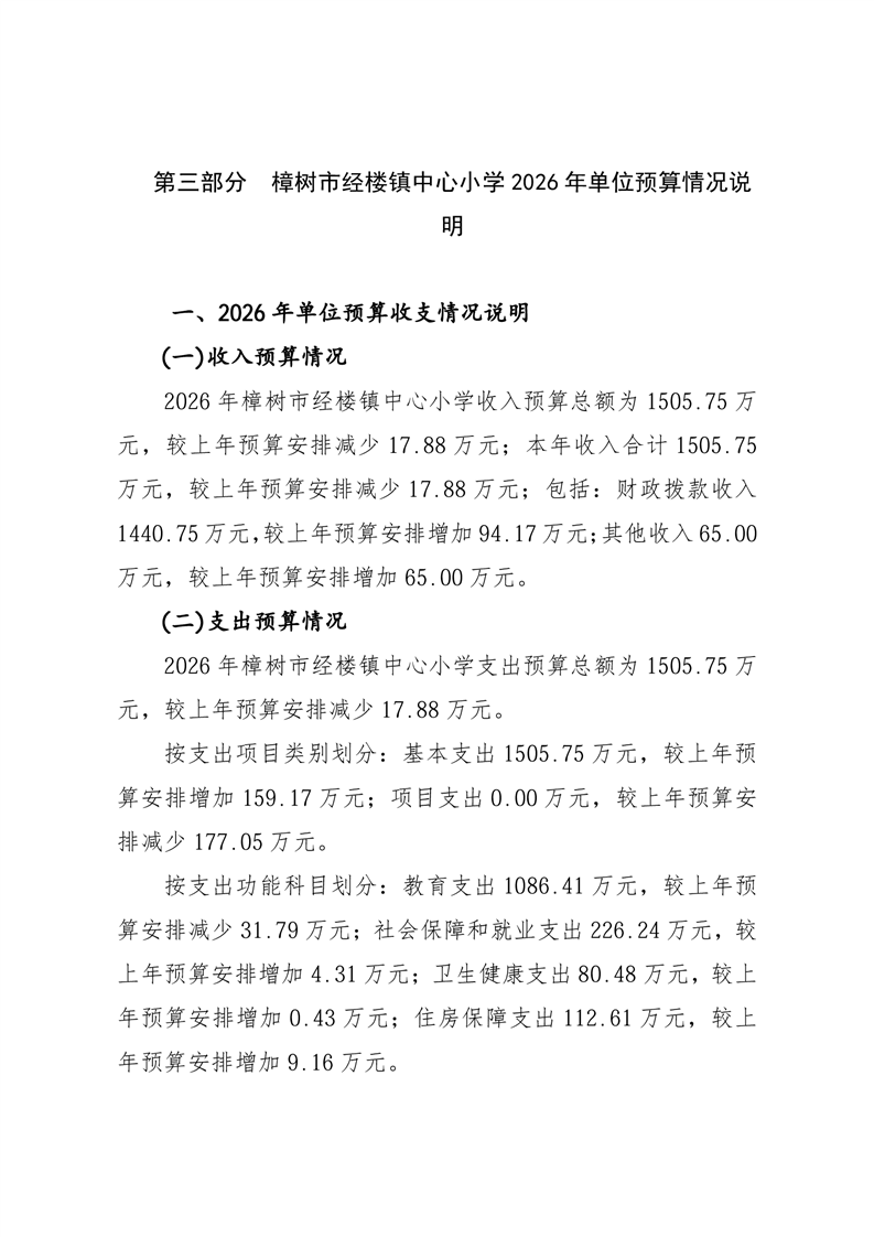 樟樹市經樓鎮中心小學2026年單位預算