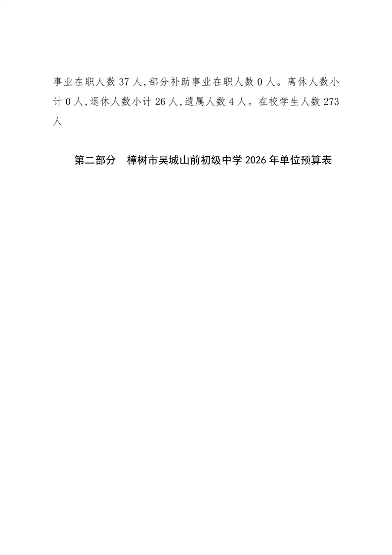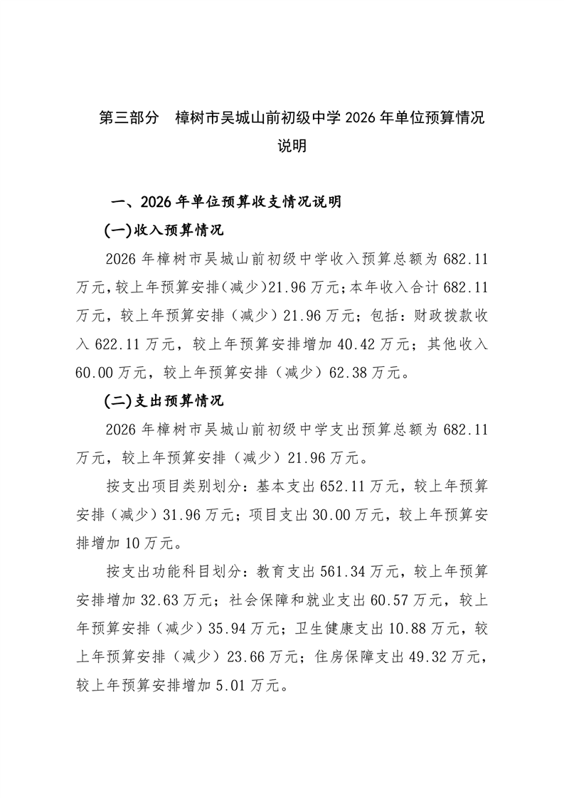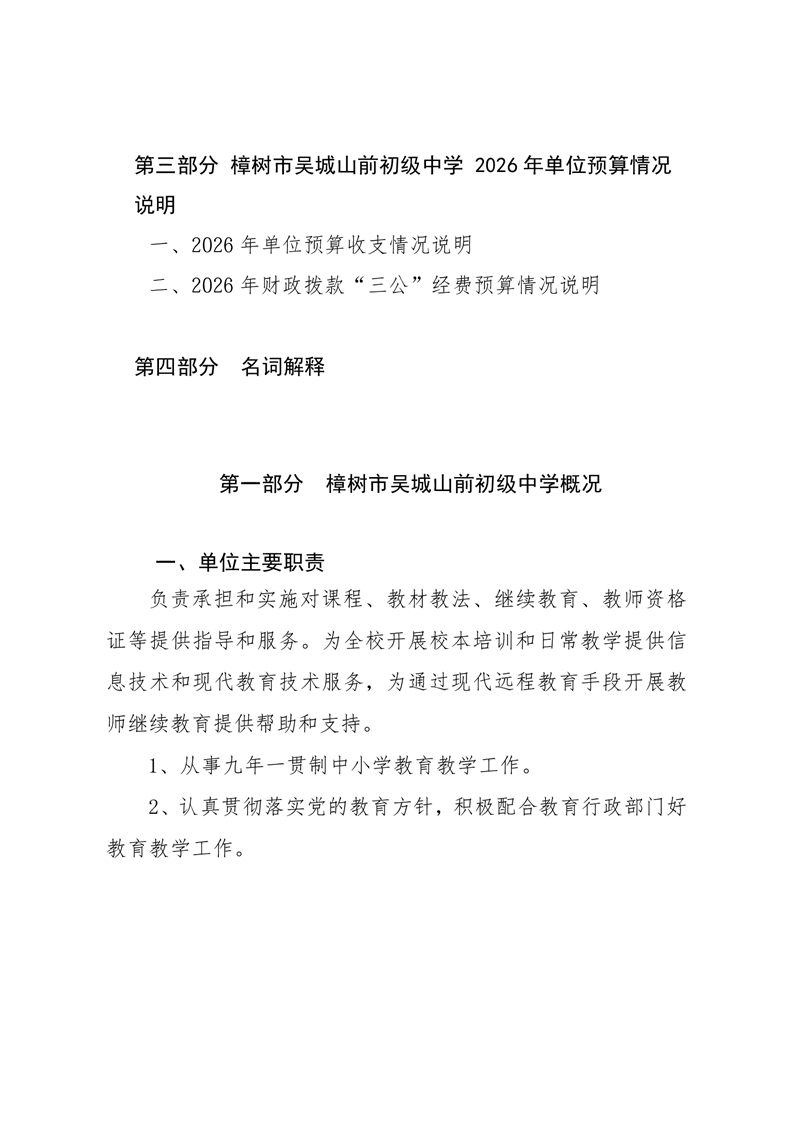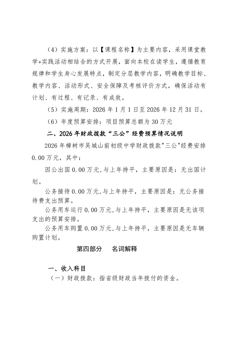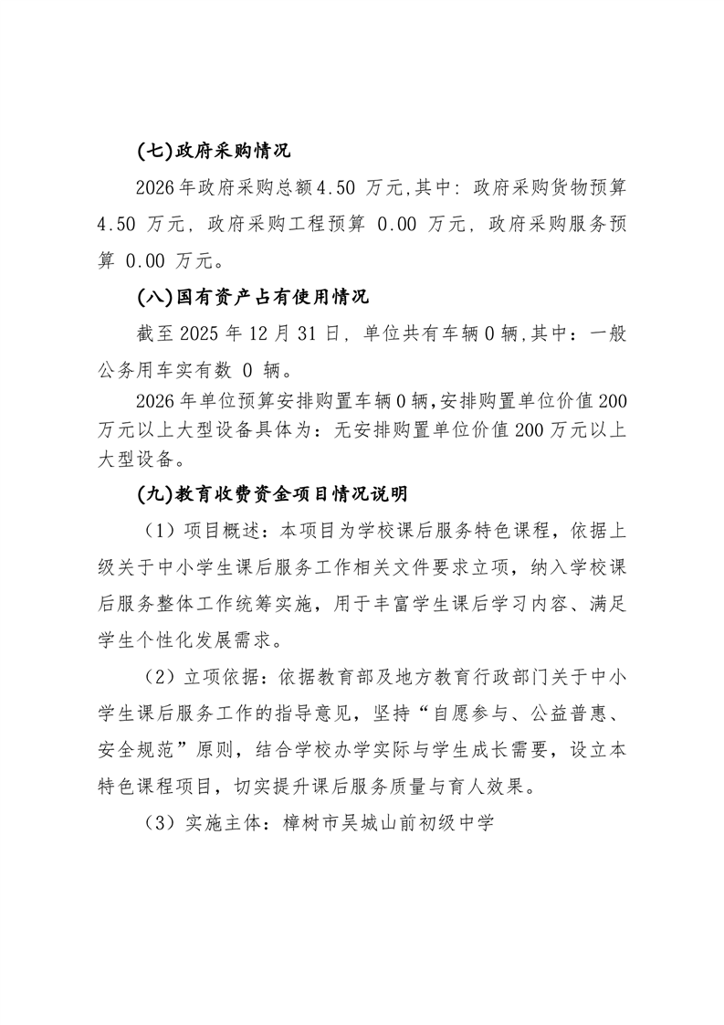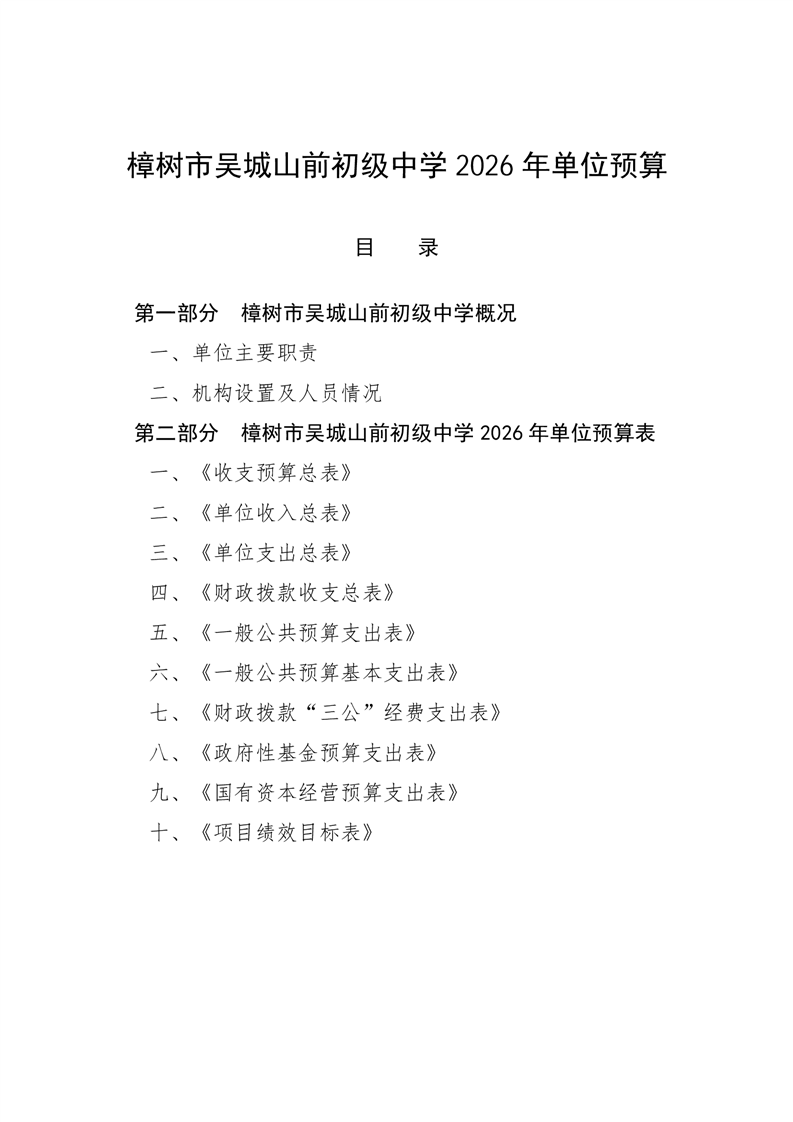 樟樹市吳城山前初級中學2026年單位預算