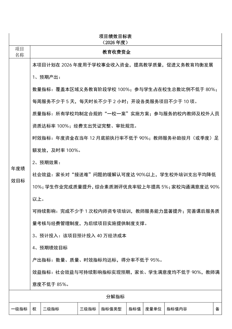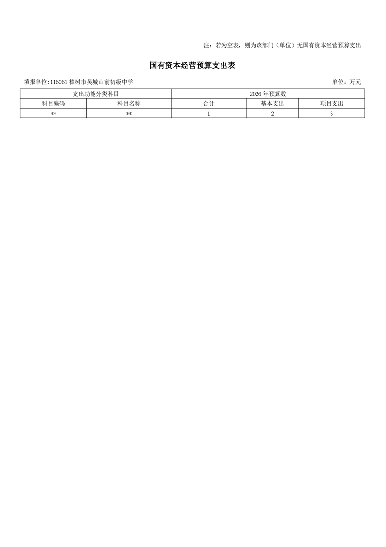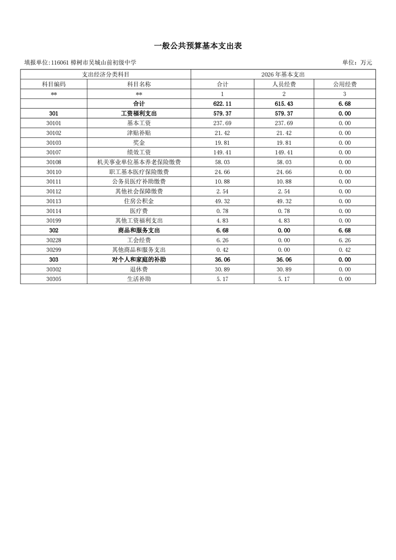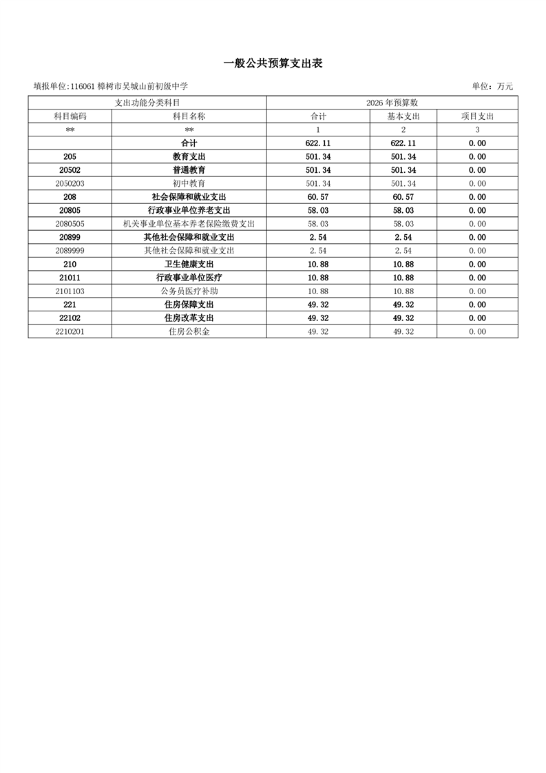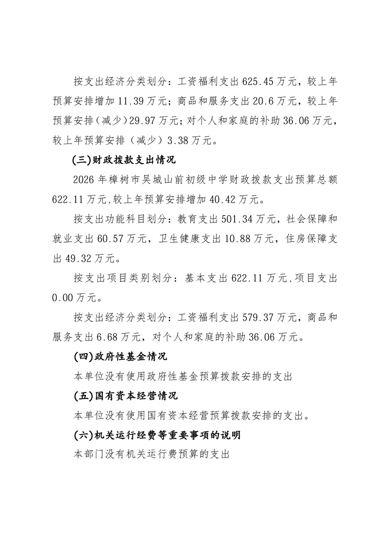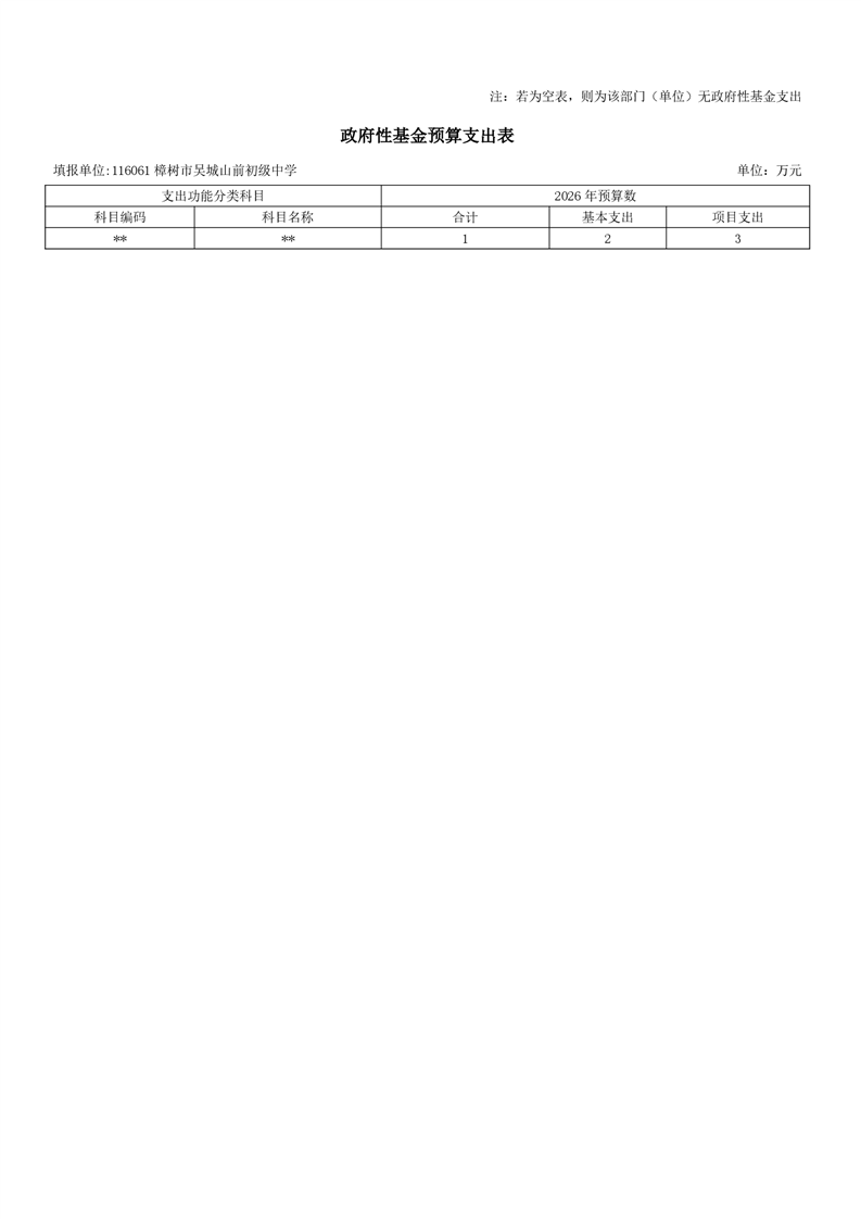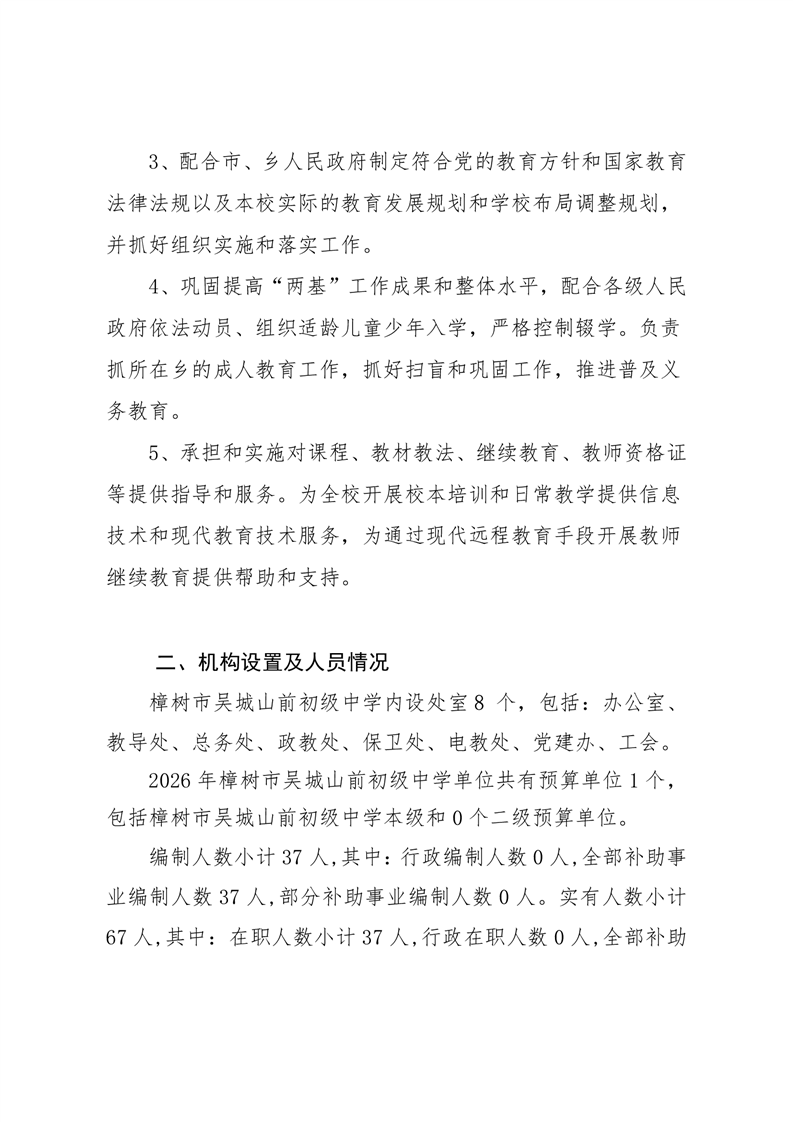 樟樹市吳城山前初級中學2026年單位預算