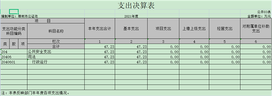 本年支出的具體構成為:基本支出 47.23 萬元,占 100 %;項目支出 0 萬元,占 0 %;經營支出 0萬元,占 0 %;其他支出(對附屬單位補助支出、上繳上級支出) 0萬元,占 0 %。