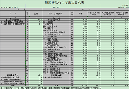 本部門2021年度財政撥款決算數為47.23萬元,完成年初預算的 100%。其中: