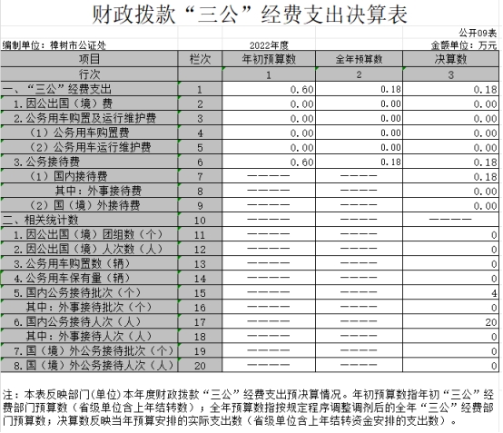 本部門2022年度財(cái)政撥款"三公"經(jīng)費(fèi)支出全年預(yù)算數(shù)為0.18萬(wàn)元,決算數(shù)為0.18萬(wàn)元,完成全年預(yù)算的100%,決算數(shù)較2021年增加0.18萬(wàn)元,增長(zhǎng)100%,其中: