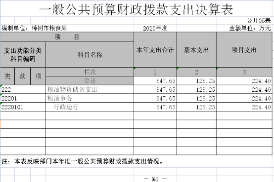 本部門2020年度財政撥款本年支出年初預算數為 341.43萬元,決算數為347.65萬元,完成年初預算的 101.82 %。其中: