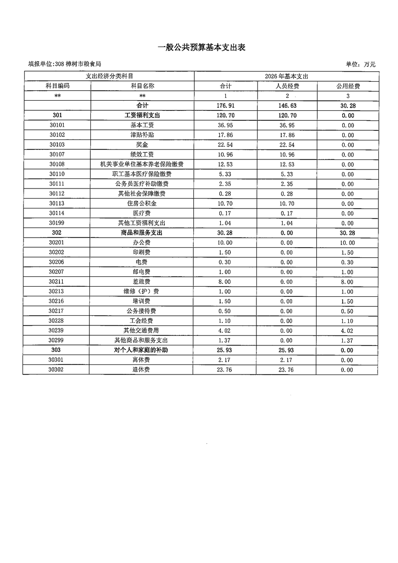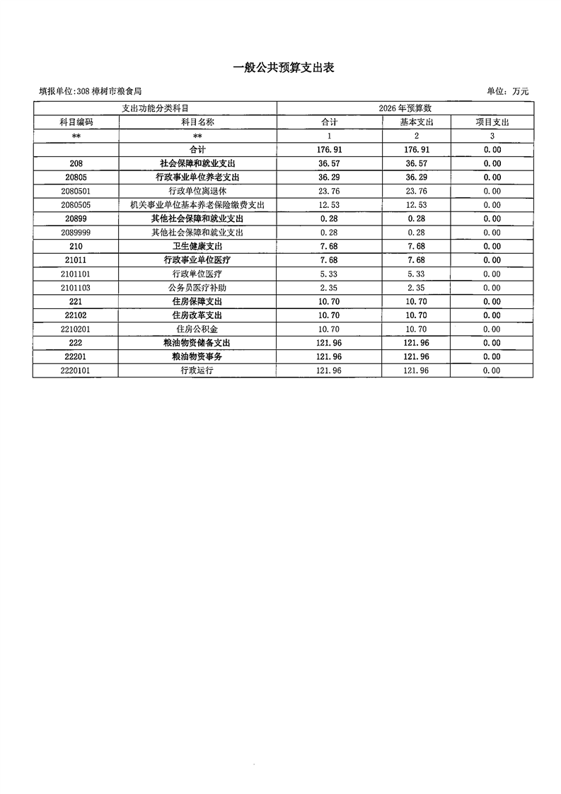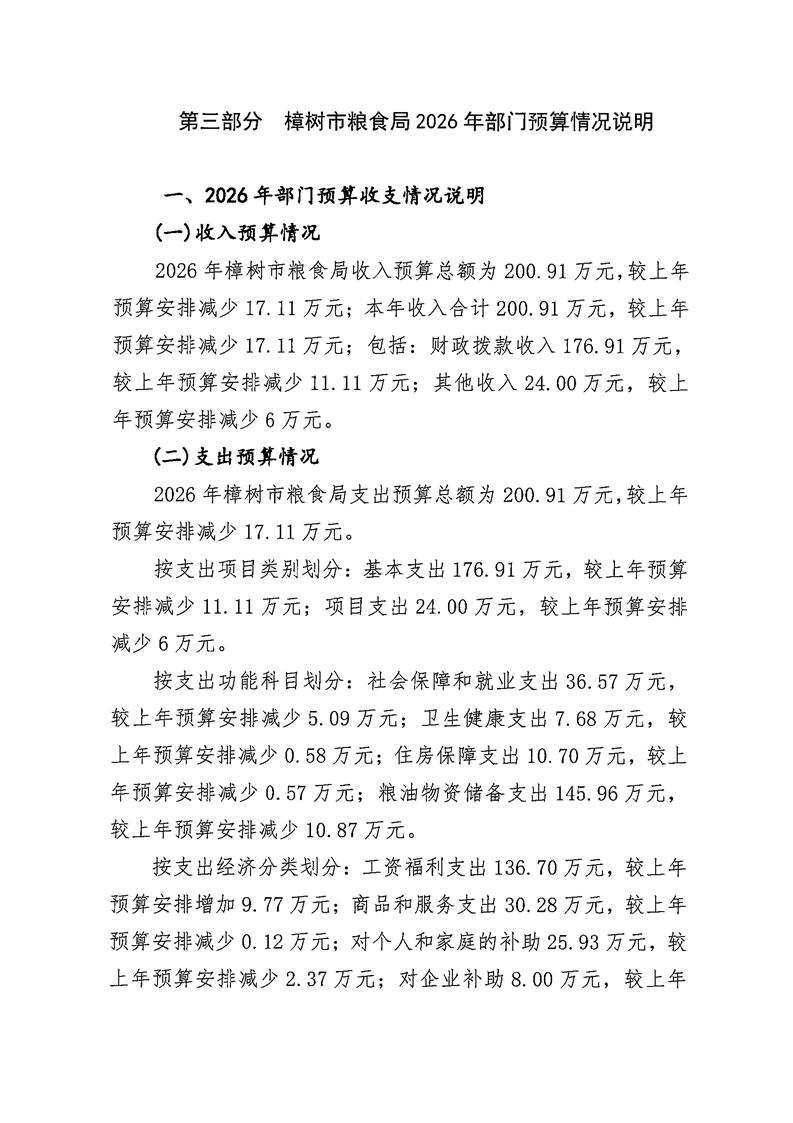 樟樹市糧食局2026年部門預(yù)算