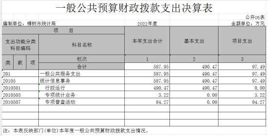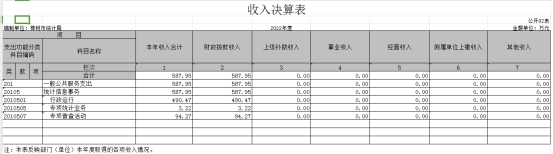 一般公共服務支出年初預算數為587.95萬元,決算數為587.95萬元,完成年初預算的100%,主要原因是:統計信息事務支出。
