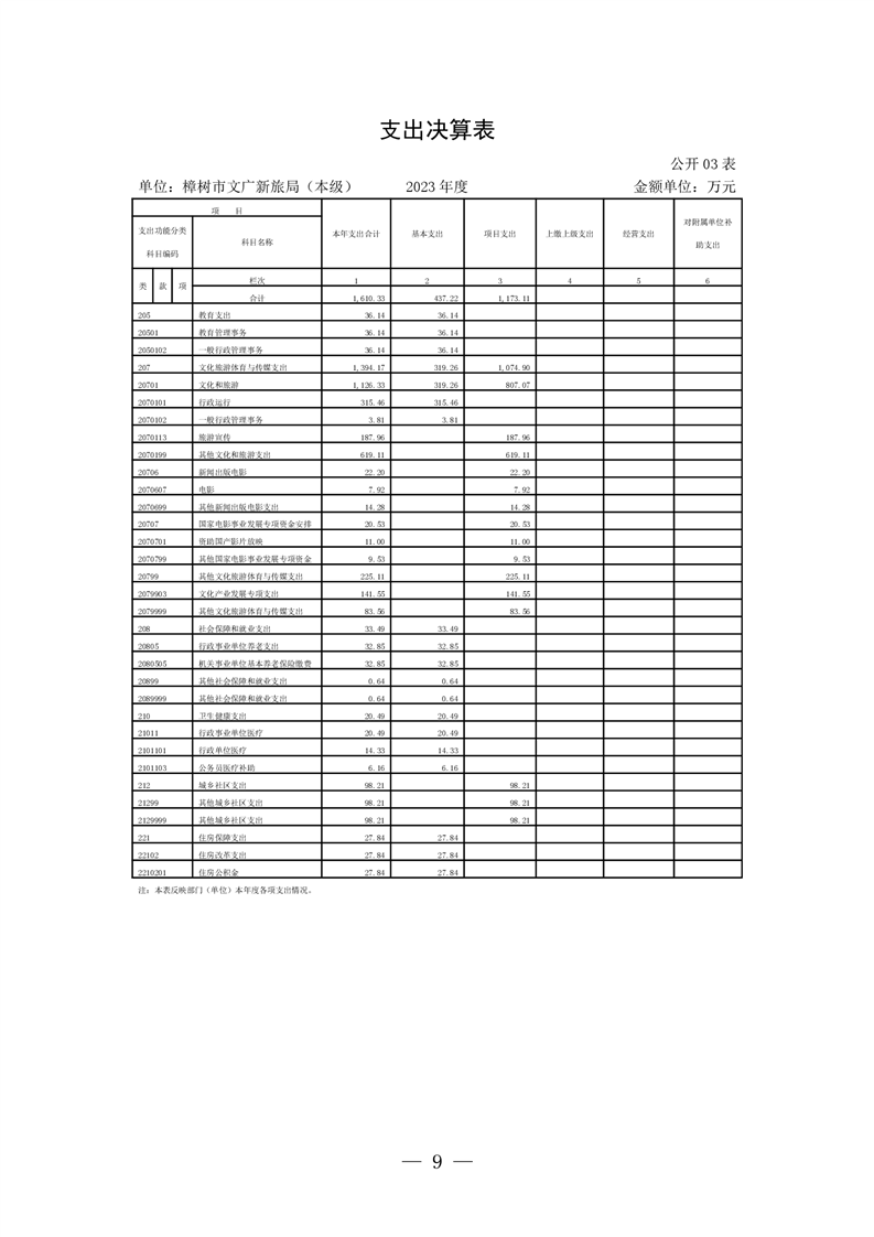 樟樹市文廣新旅局(本級)2023年度單位決算