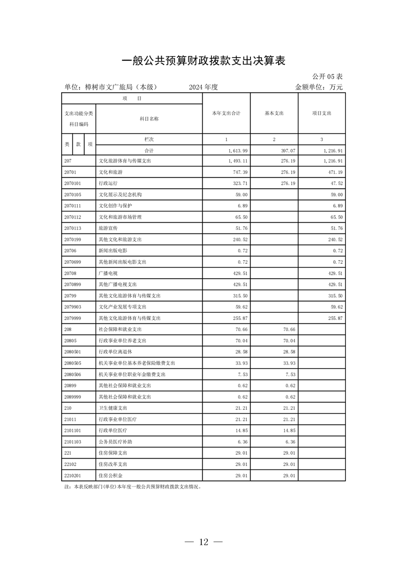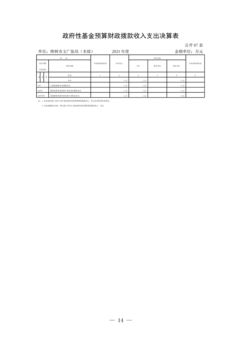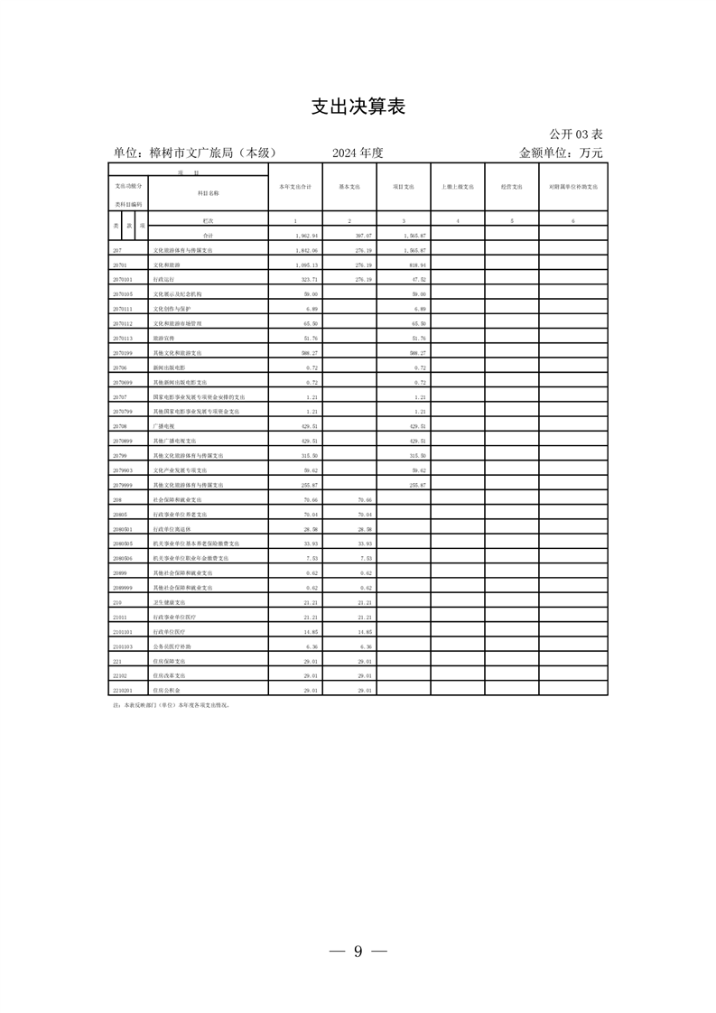 樟樹市文廣旅局(本級)2024年度單位決算公開