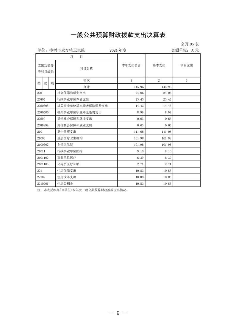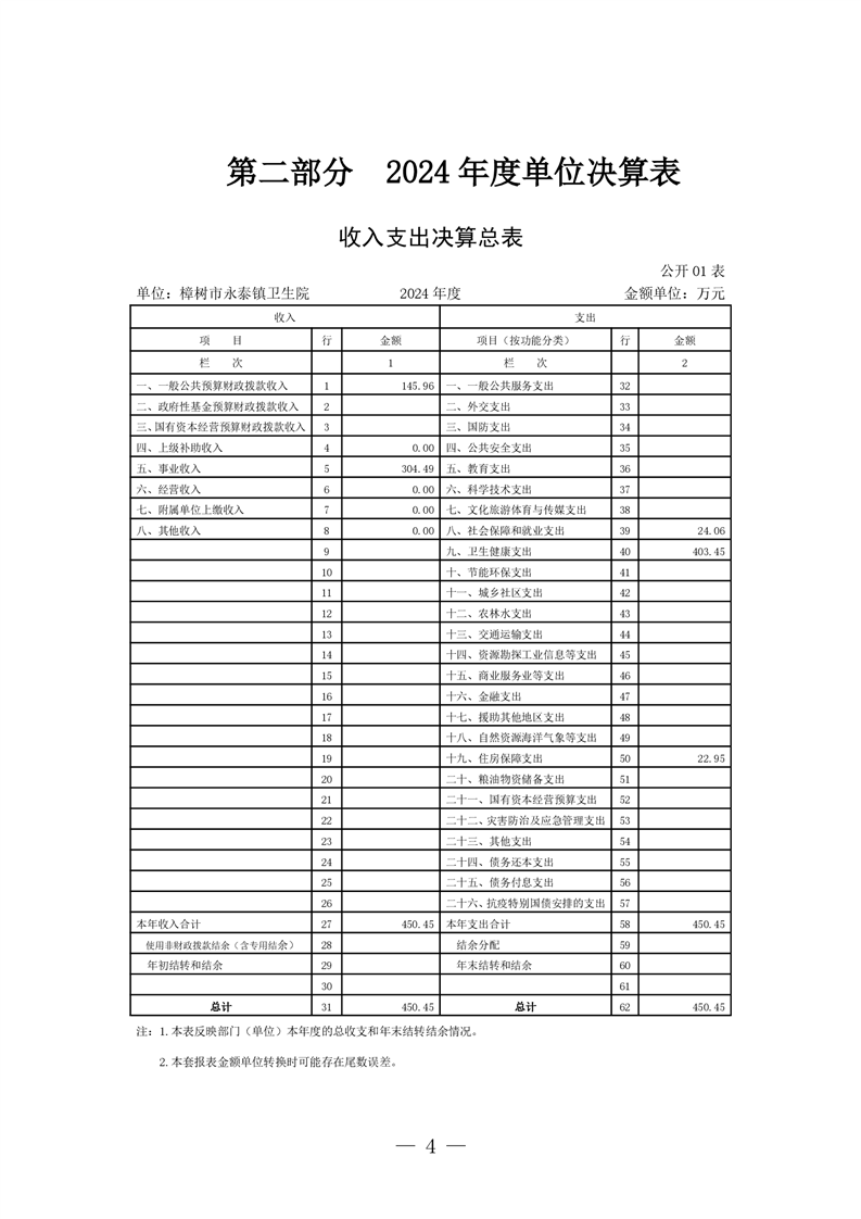 樟樹(shù)市永泰鎮(zhèn)衛(wèi)生院2024年度單位決算