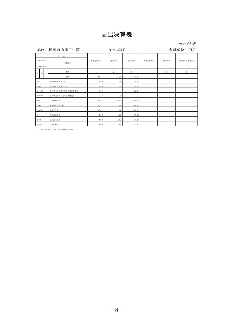 樟樹市山前衛(wèi)生院2024年度單位決算