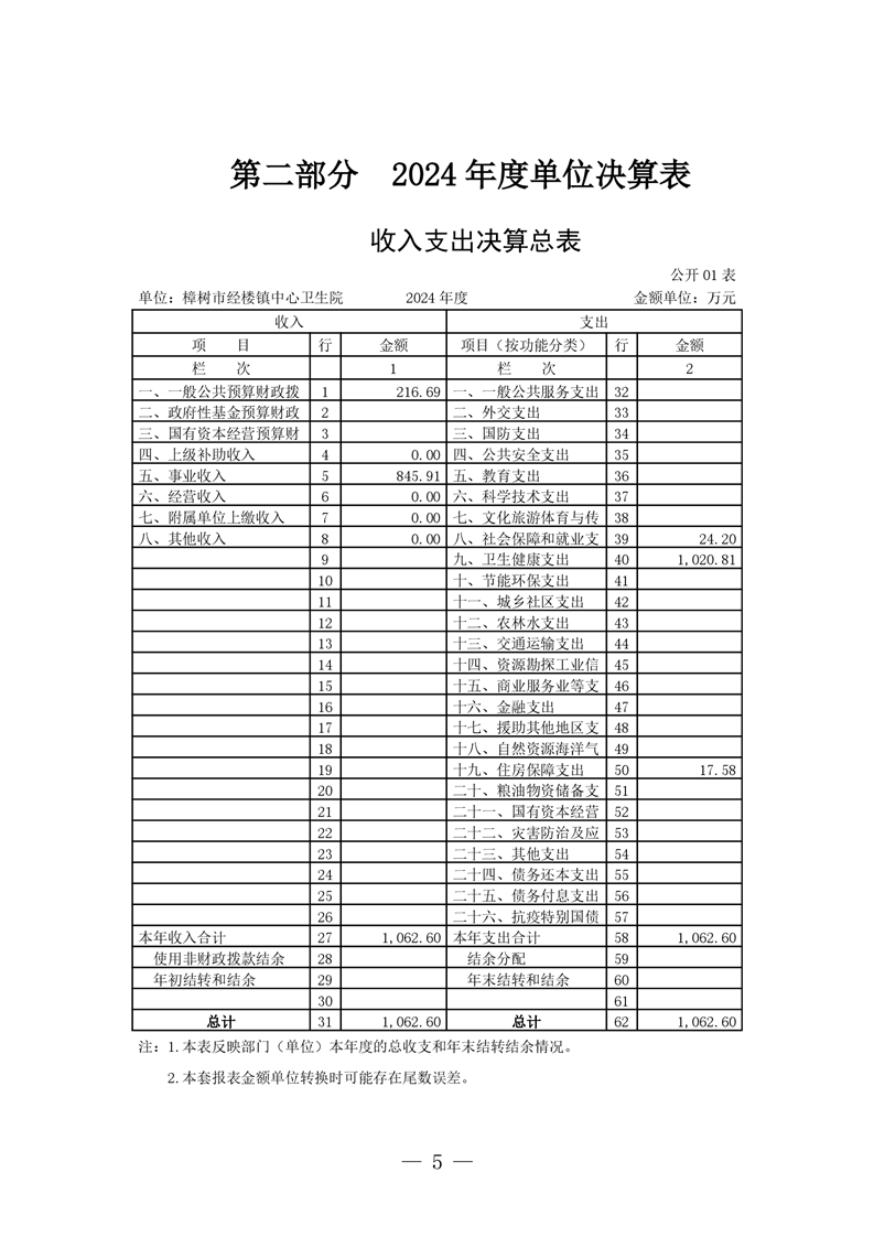 樟樹市經(jīng)樓鎮(zhèn)中心衛(wèi)生院2024年度單位決算