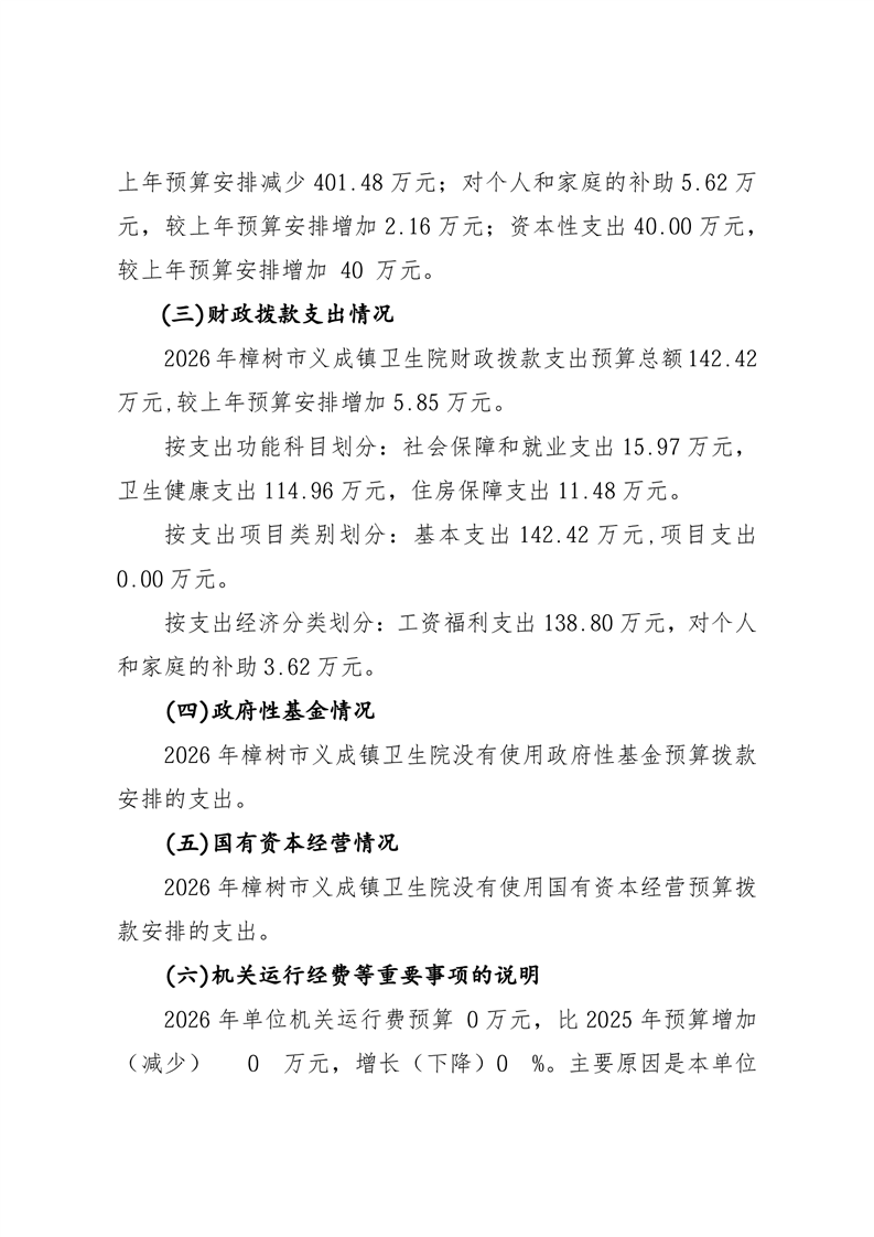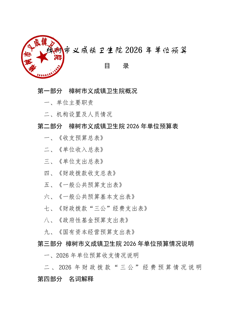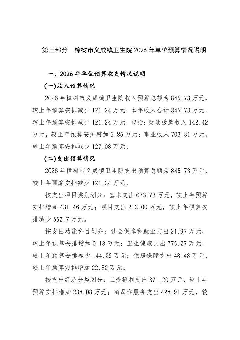 樟樹市義成鎮衛生院2026年單位預算