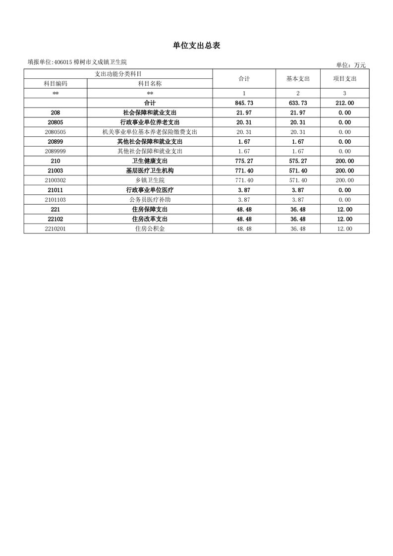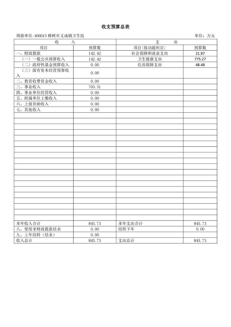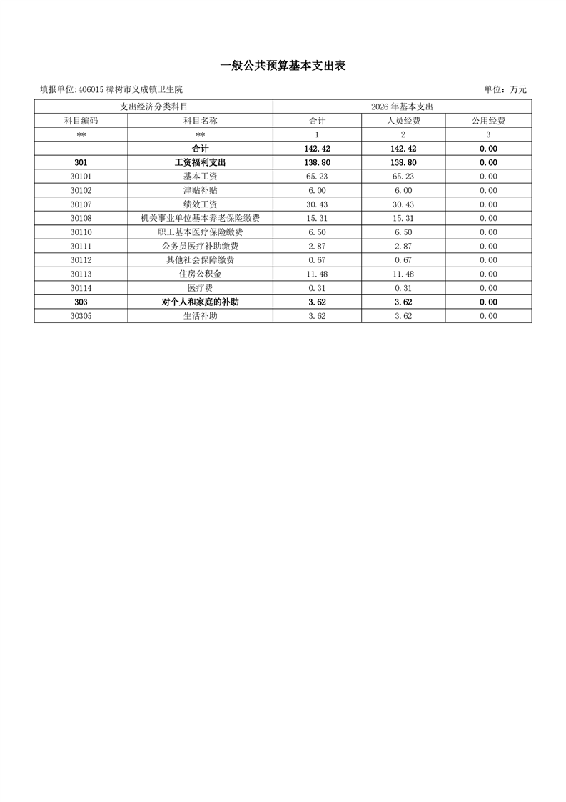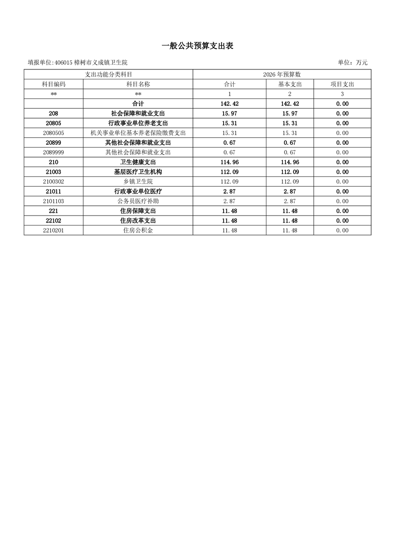 樟樹市義成鎮衛生院2026年單位預算