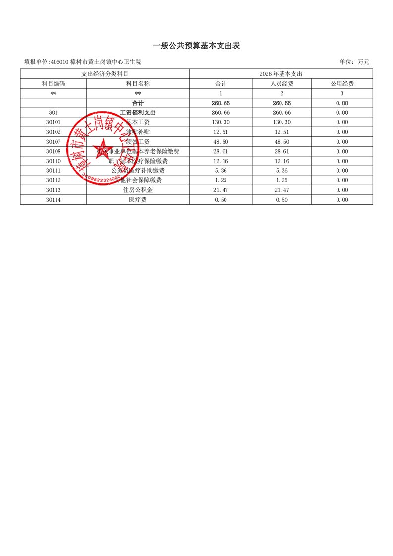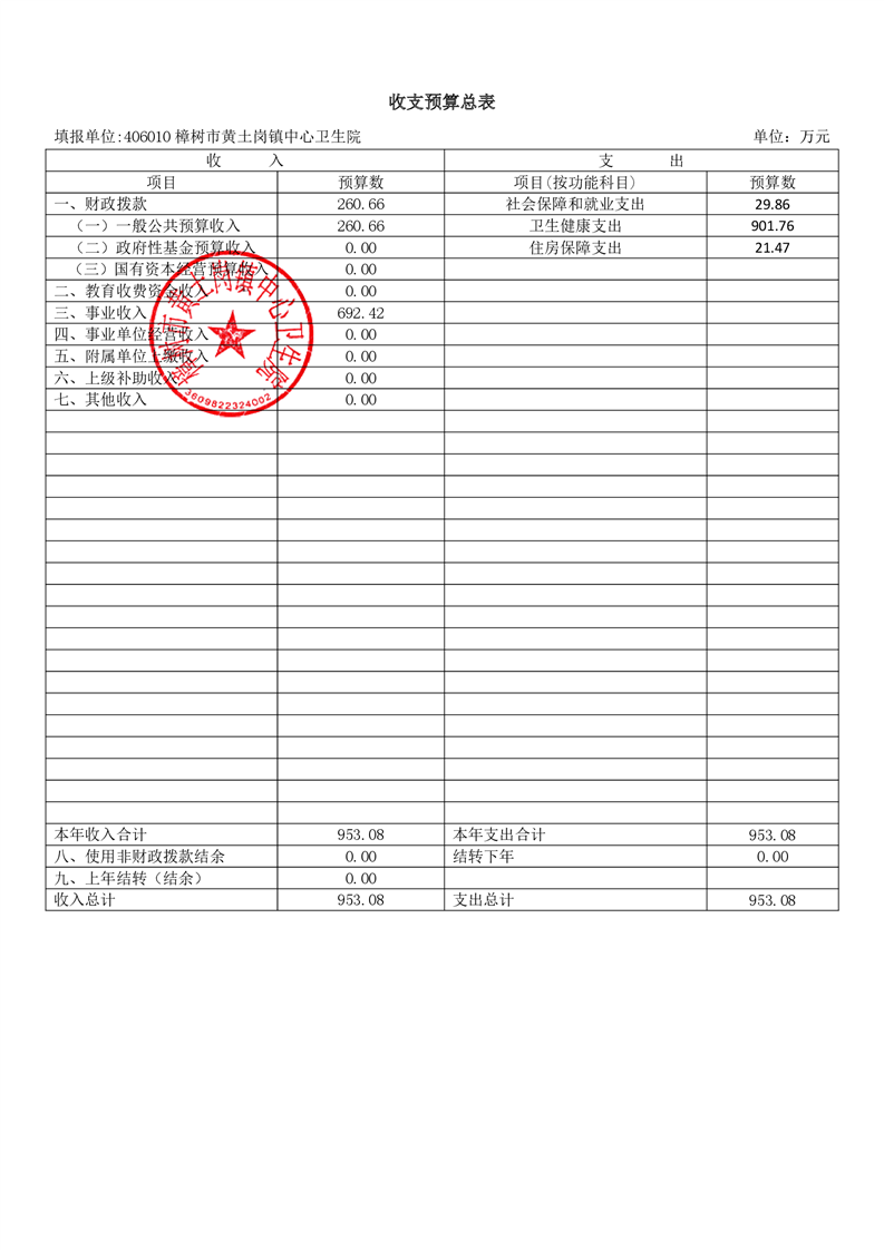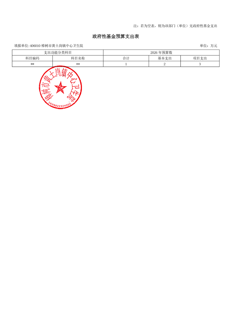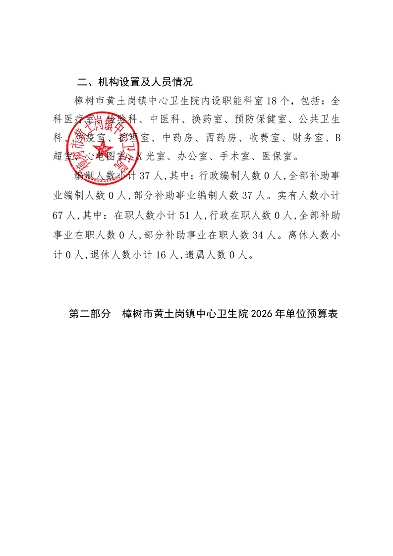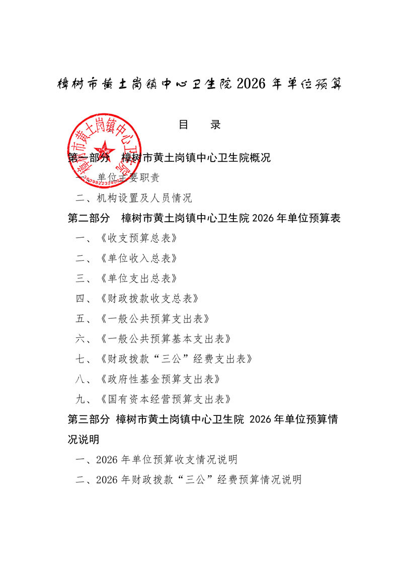 樟樹市黃土崗鎮(zhèn)中心衛(wèi)生院2026年單位預(yù)算