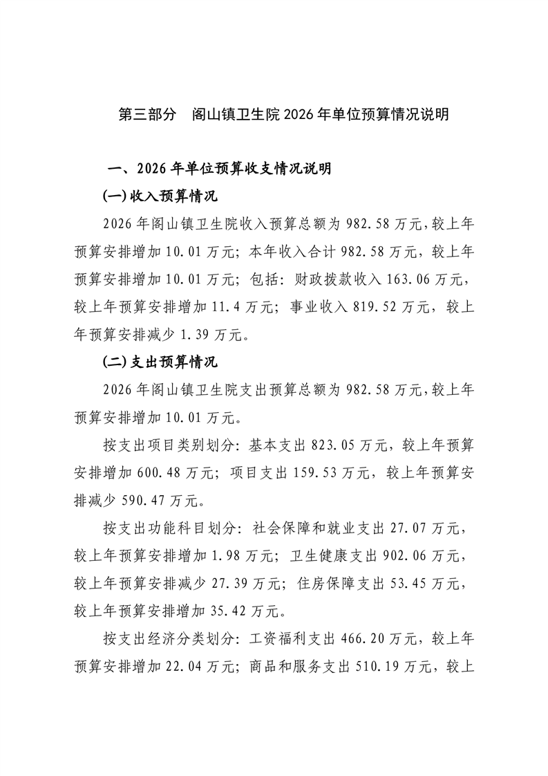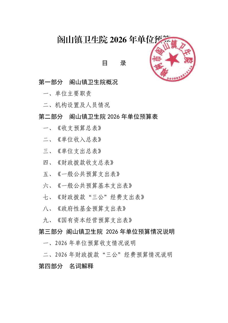 樟樹市閣山鎮衛生院2026年單位預算
