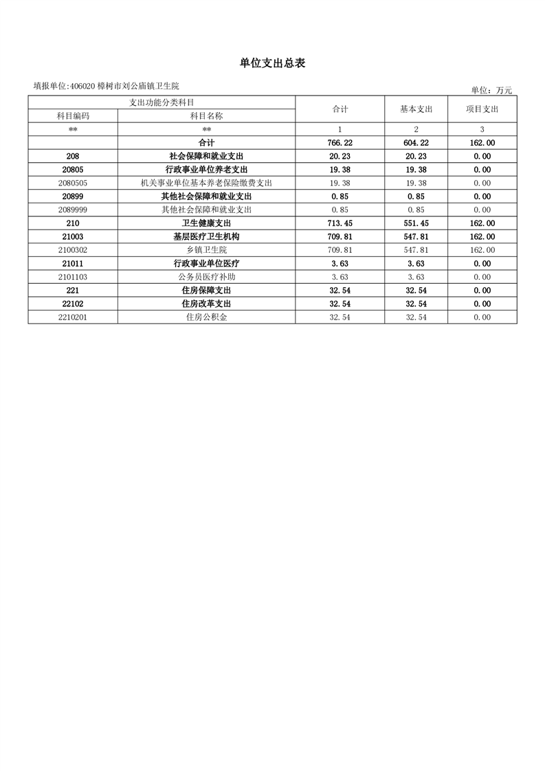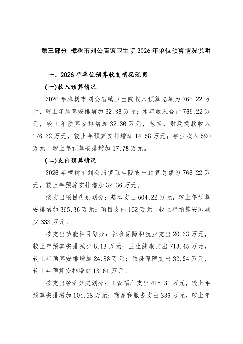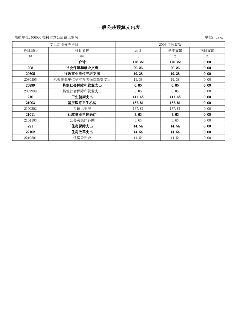 樟樹市劉公廟鎮衛生院2026年單位預算
