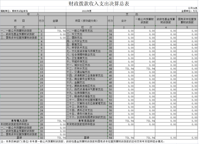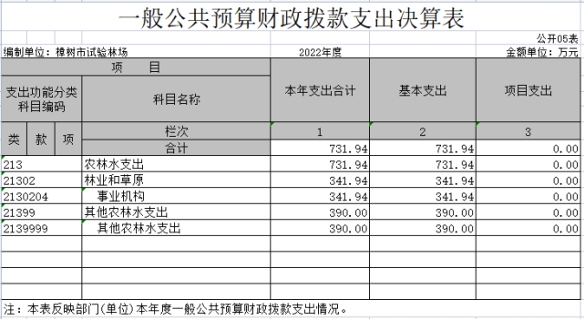 農林水支出年初預算數為 694.97萬元,決算數為 731.94 萬元,完成年初預算的 105.3%,主要原因是:基本工資增加,人員經費預算增加。