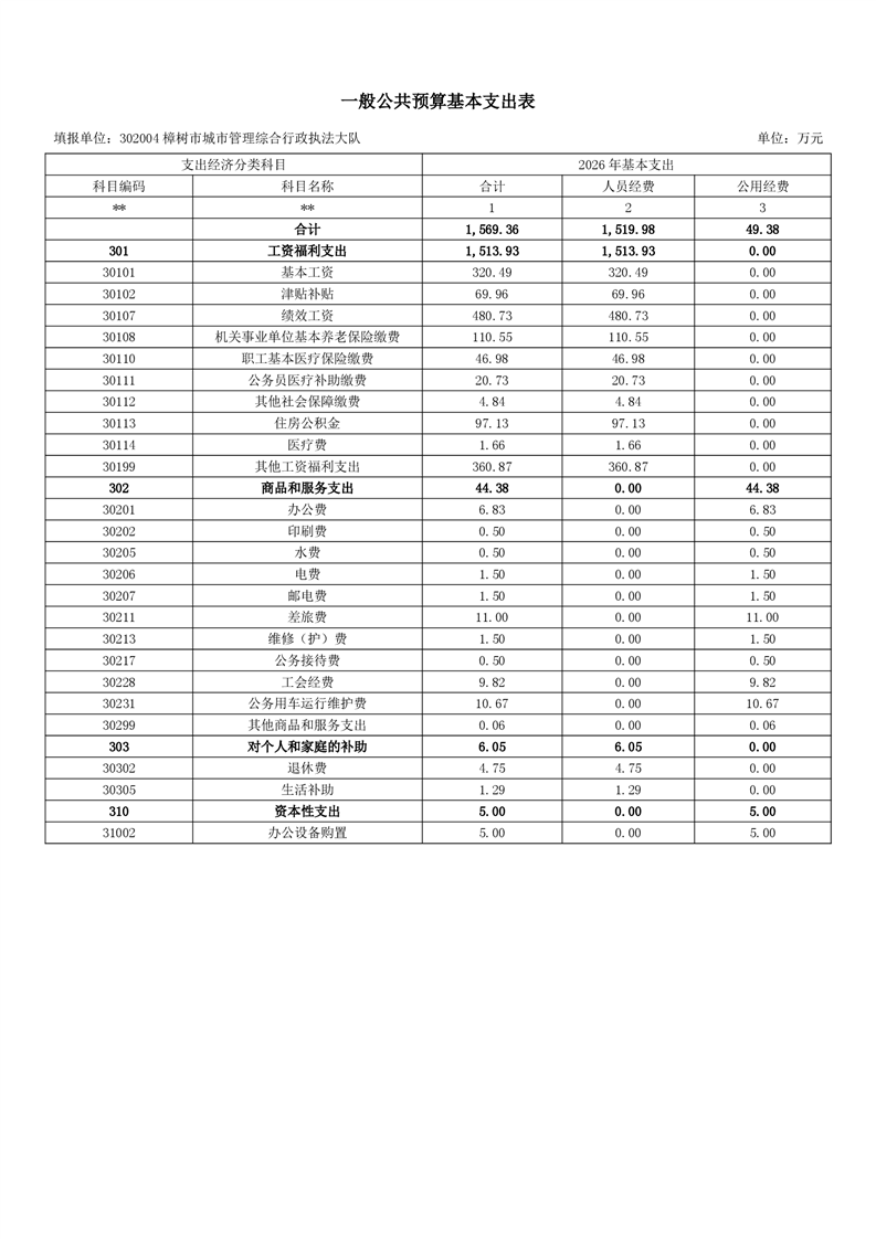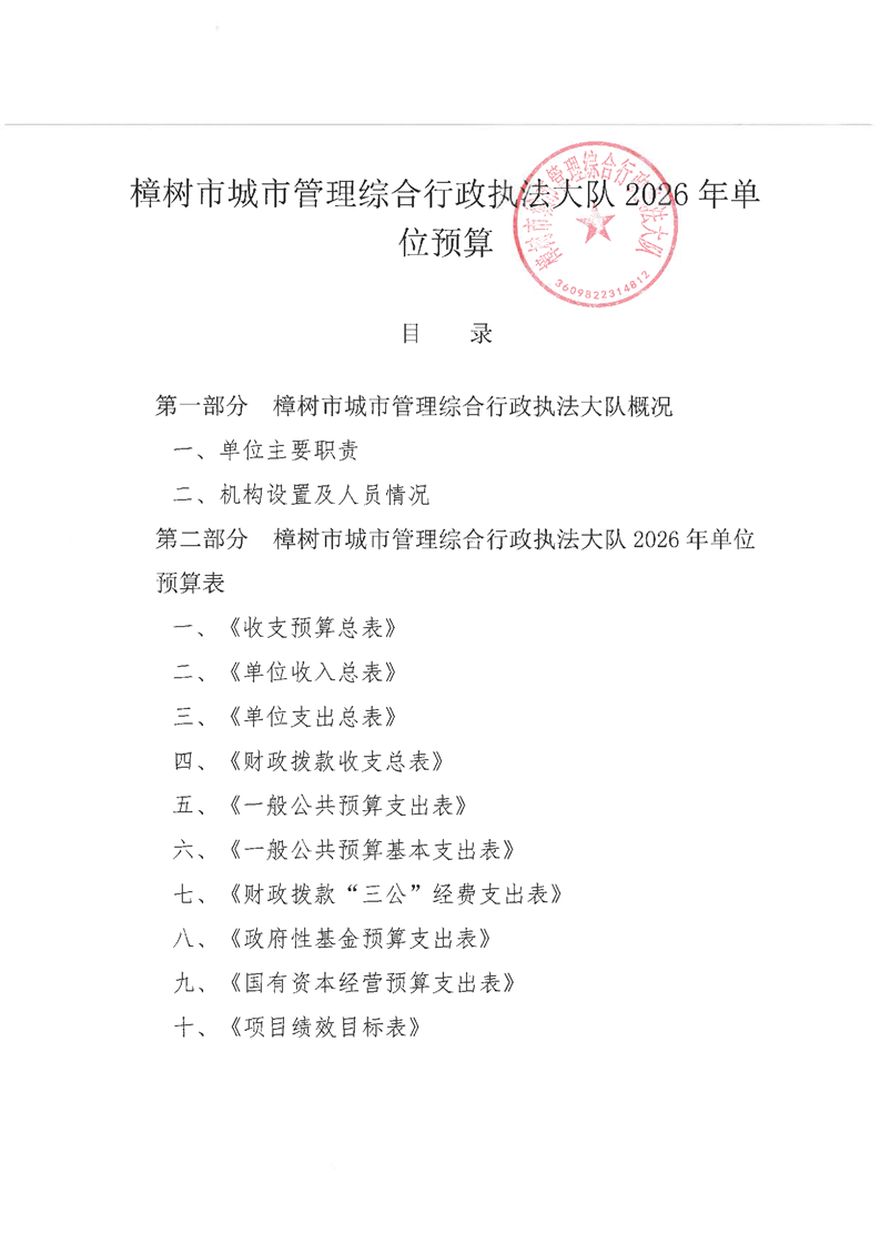 樟樹市城市管理綜合行政執法大隊2026年單位預算