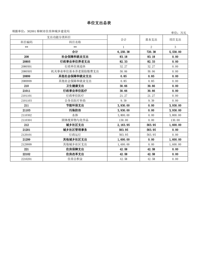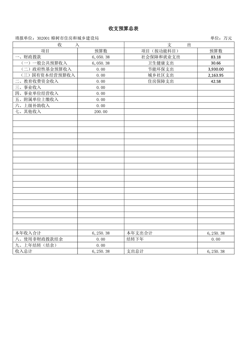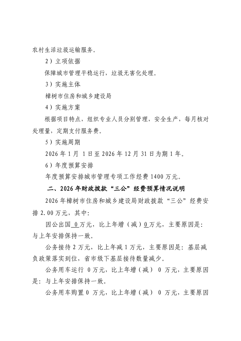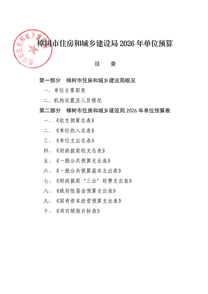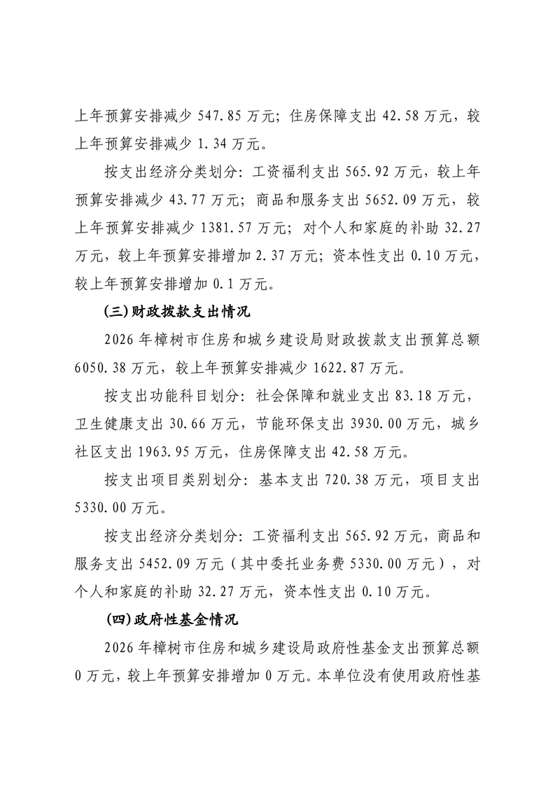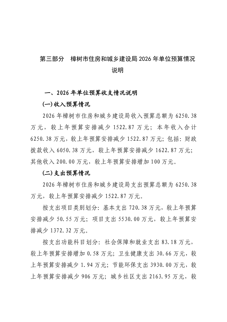 樟樹市住房和城鄉建設局2026年單位預算