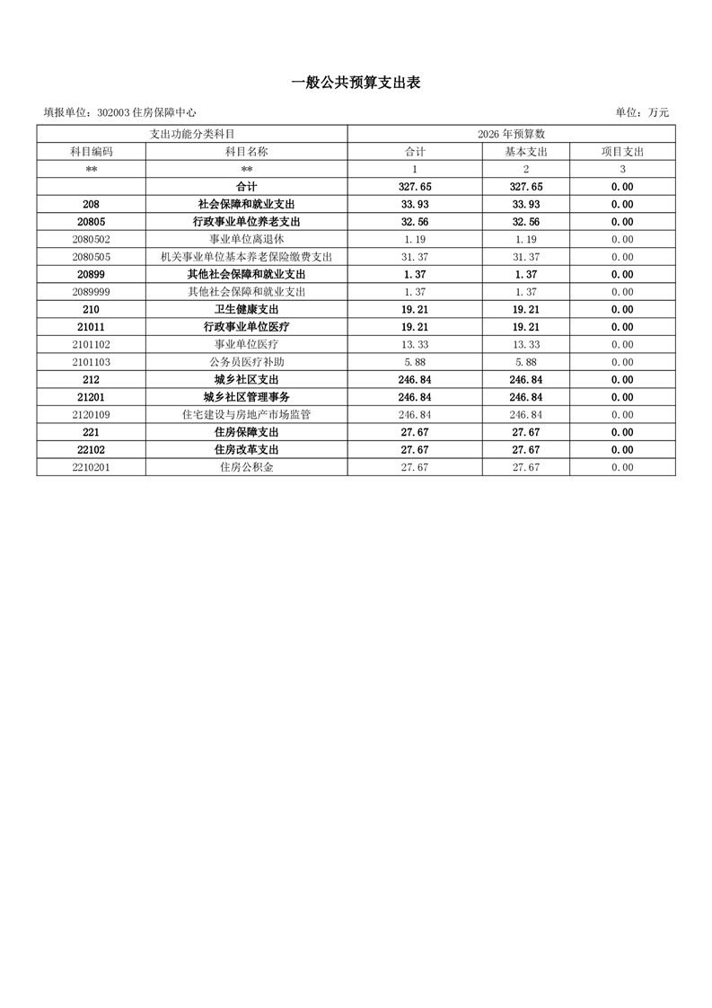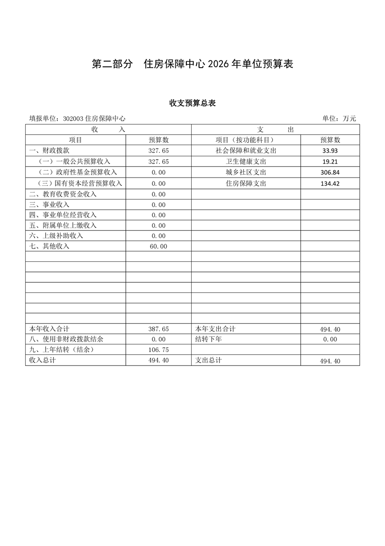 樟樹市住房保障中心2026年單位預算