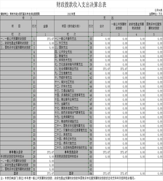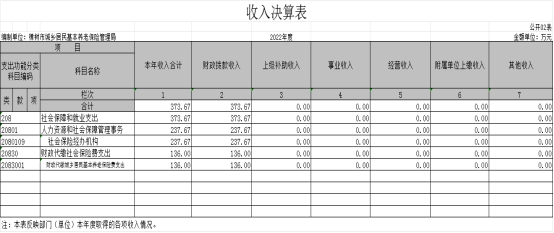 本單位2022年度收入總計(jì)373.67萬(wàn)元,其中年初結(jié)轉(zhuǎn)和結(jié)余0萬(wàn)元,較2021年11908.56萬(wàn)元減少11534.89萬(wàn)元,下降96.86%;本年收入合計(jì)373.67萬(wàn)元,較2021年11908.56萬(wàn)元減少11534.89萬(wàn)元,下降96.86%,主要原因是:2022年決算數(shù)據(jù)中未加入財(cái)政對(duì)城鄉(xiāng)居民養(yǎng)老保險(xiǎn)基金的補(bǔ)助,而2021年的決算數(shù)據(jù)中加入了財(cái)政對(duì)城鄉(xiāng)居民養(yǎng)老保險(xiǎn)基金的補(bǔ)助,從而導(dǎo)致數(shù)據(jù)的差額。