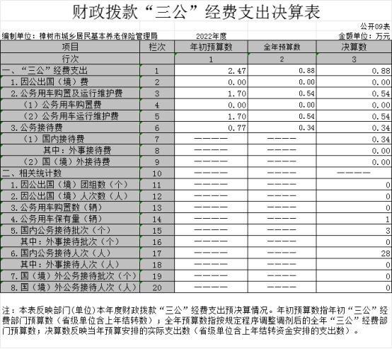 (二)公務(wù)接待費(fèi)支出全年預(yù)算數(shù)為0.34萬(wàn)元,決算數(shù)為0.34萬(wàn)元,完成全年預(yù)算的100%,決算數(shù)較2021年0.1萬(wàn)元增加0.24萬(wàn)元,增長(zhǎng)240%,主要原因是2022年樟樹市城鄉(xiāng)居民基本養(yǎng)老保險(xiǎn)管理局和樟樹市社會(huì)保險(xiǎn)事業(yè)管理局合并為樟樹市社會(huì)保險(xiǎn)事業(yè)服務(wù)中心,各縣市學(xué)習(xí)交流增多,居保2022年上全國(guó)社保系統(tǒng),組織鄉(xiāng)鎮(zhèn)相關(guān)工作人員線上培訓(xùn)。決算數(shù)較全年預(yù)算數(shù)持平。全年國(guó)內(nèi)公務(wù)接待3批,累計(jì)接待28人次,其中外事接待0批,累計(jì)接待0人次,主要為兄弟縣市業(yè)務(wù)交流學(xué)習(xí)和接待各鄉(xiāng)鎮(zhèn)勞保所工作人員召開城居保上線業(yè)務(wù)培訓(xùn)會(huì)。