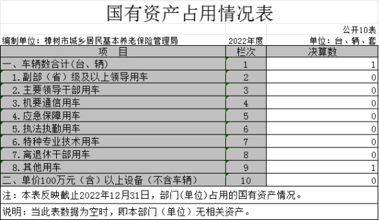 截止2022年12月31日,本單位國(guó)有資產(chǎn)占用情況見公開10表《國(guó)有資產(chǎn)占用情況表》。其中車輛中的其他用車主要是單位公務(wù)用車。