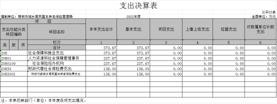 本單位2022年度支出總計(jì)373.67萬(wàn)元,其中本年支出合計(jì)373.67萬(wàn)元,較2021年11908.56萬(wàn)元減少11534.89萬(wàn)元,下降96.86 %,主要原因是:2022年決算數(shù)據(jù)中未加入財(cái)政對(duì)城鄉(xiāng)居民養(yǎng)老保險(xiǎn)基金的補(bǔ)助,而2021年的決算數(shù)據(jù)中加入了財(cái)政對(duì)城鄉(xiāng)居民養(yǎng)老保險(xiǎn)基金的補(bǔ)助,從而導(dǎo)致數(shù)據(jù)的差額;年末結(jié)轉(zhuǎn)和結(jié)余0萬(wàn)元,較2021年持平。