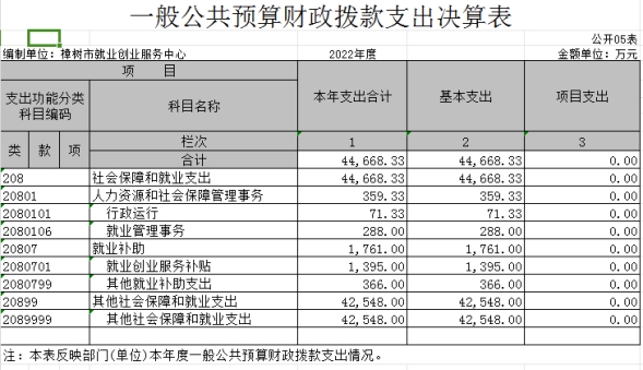 2、社會(huì)保障和就業(yè)(類)人力資源和社會(huì)保障事務(wù)(款)就業(yè)管理事務(wù)(項(xiàng)):指單位人員工資福利支出。