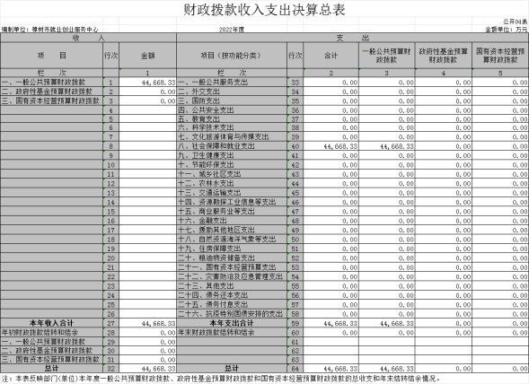 本單位2022年度收入總計(jì)4466.83萬(wàn)元,其中年初結(jié)轉(zhuǎn)和結(jié)余0萬(wàn)元,較2021年增加0萬(wàn)元,增長(zhǎng)0%;本年收入合計(jì)4466.83萬(wàn)元,較2021年增加1596.81萬(wàn)元,增長(zhǎng)55.64%,主要原因是:積極落實(shí)穩(wěn)就業(yè)政策,加大對(duì)其他社會(huì)保障和就業(yè)的支出。