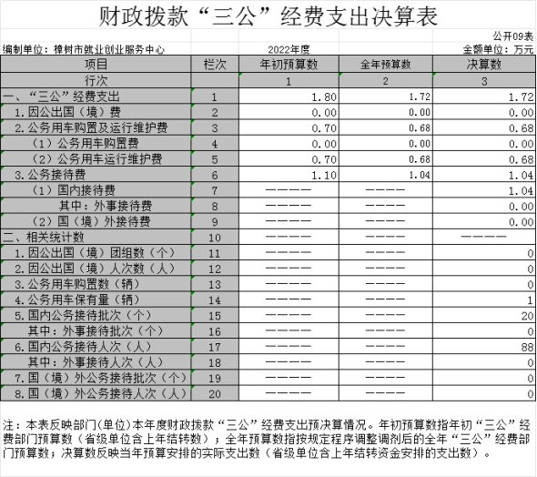8、“三公”經(jīng)費(fèi):納入財(cái)政預(yù)決算管理的“三公”經(jīng)費(fèi),是指部門(mén)用財(cái)政撥款安排的因公出國(guó)(境)費(fèi)、公務(wù)用車購(gòu)置及運(yùn)行費(fèi)和公務(wù)接待費(fèi)。其中,因公出國(guó)(境)費(fèi)反映單位公務(wù)出國(guó)(境)的國(guó)際旅費(fèi)、國(guó)外城市間交通費(fèi)、住宿費(fèi)、伙食費(fèi)、培訓(xùn)費(fèi)、公雜費(fèi)等支出;公務(wù)用車購(gòu)置及運(yùn)行費(fèi)反映單位公務(wù)用車車輛購(gòu)置支出(含車輛購(gòu)置稅)及租用費(fèi)、燃料費(fèi)、維修費(fèi)、過(guò)路過(guò)橋費(fèi)、保險(xiǎn)費(fèi)、安全獎(jiǎng)勵(lì)費(fèi)用等支出;公務(wù)接待費(fèi)反映單位按規(guī)定開(kāi)支的各類公務(wù)接待(含外賓接待)支出。