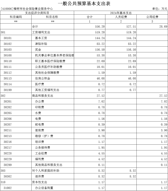 第二部分 樟樹市社會保險事業服務中心2024年部門預算表